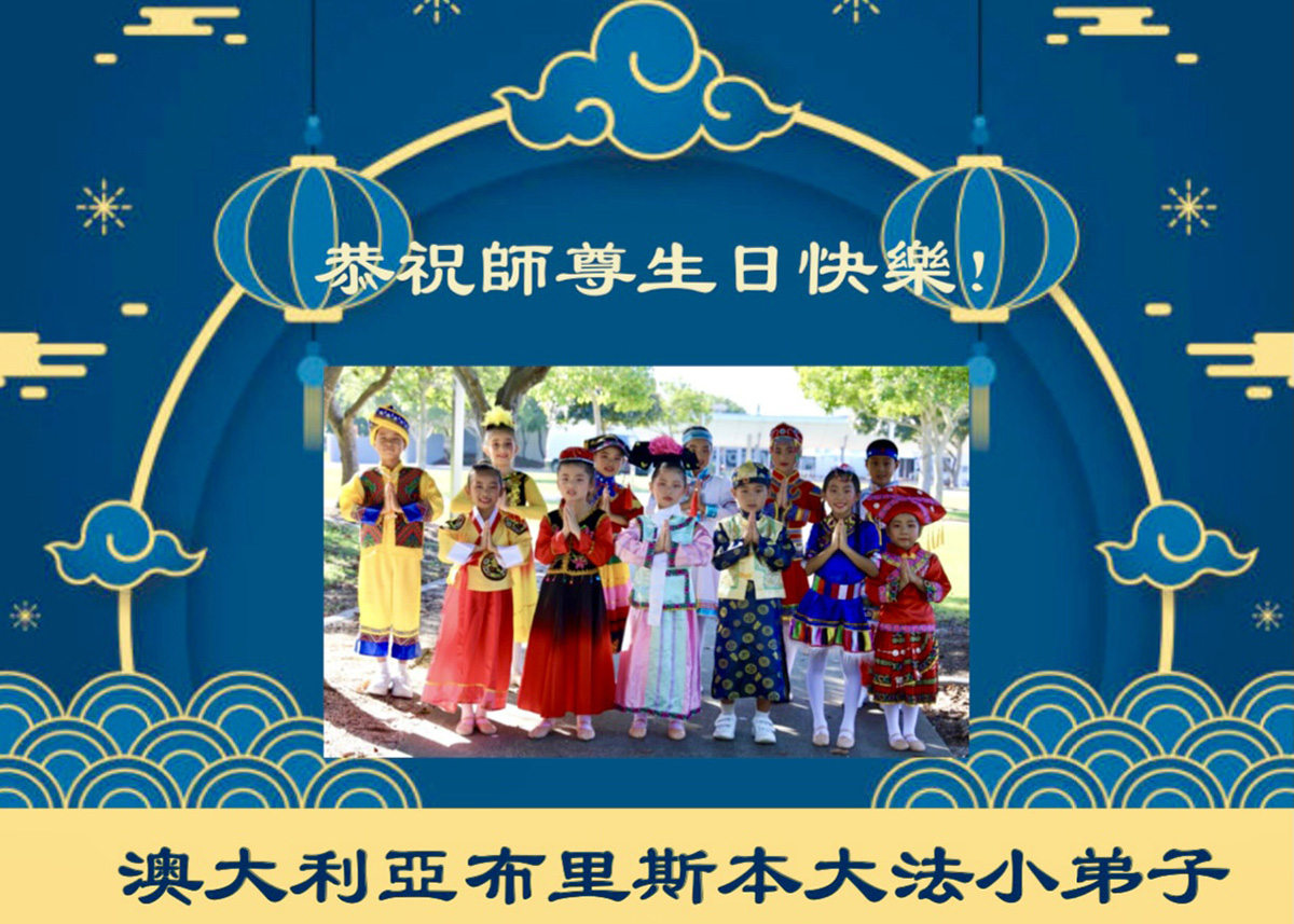 ![]() 图4:昆士兰大法小弟子恭祝慈悲伟大的师尊生日快乐 |