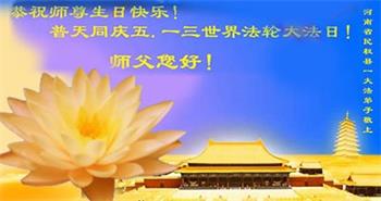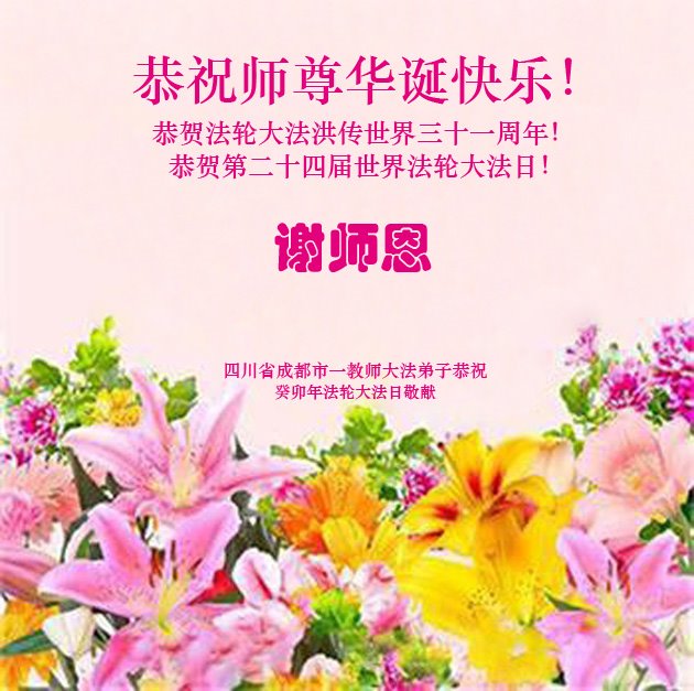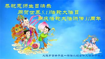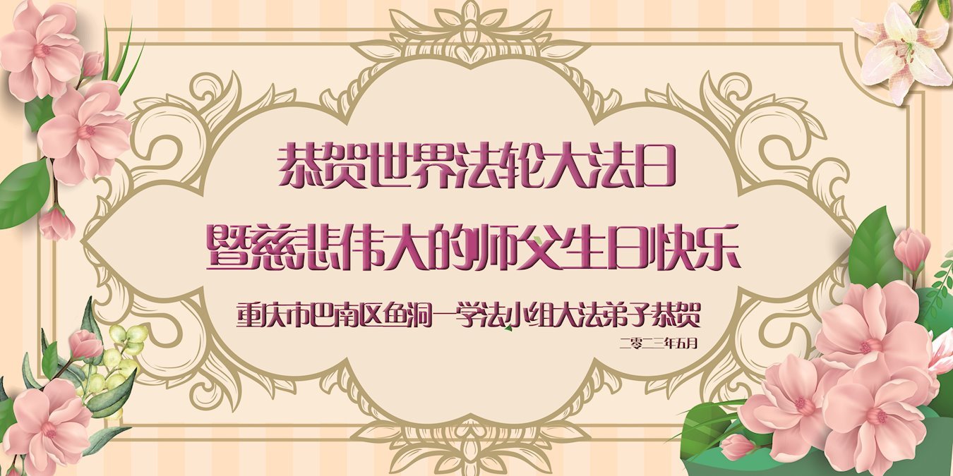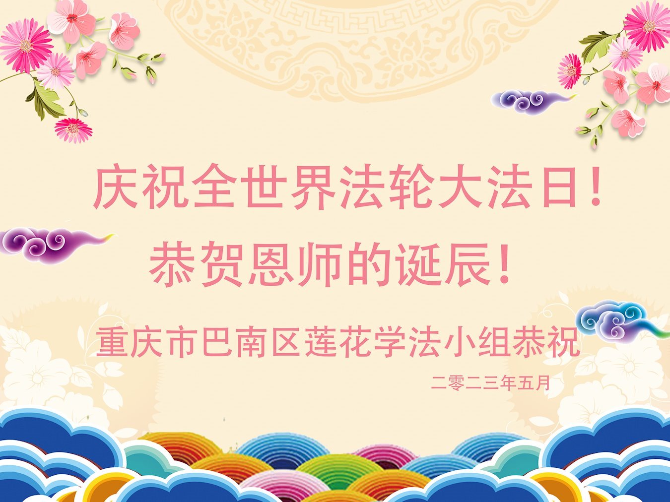 中国大陆西南大学大法弟子恭贺第二十四届世界法轮大法日暨师父七十二华诞!恭贺法轮大法洪传三十一周年!恭祝法轮大法洪传世界一百多个国家!感谢师尊的慈悲救度和保护!