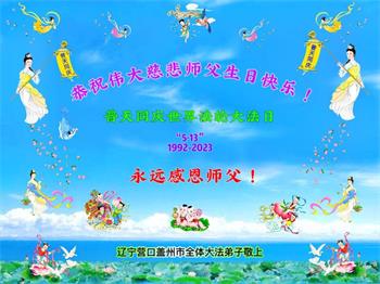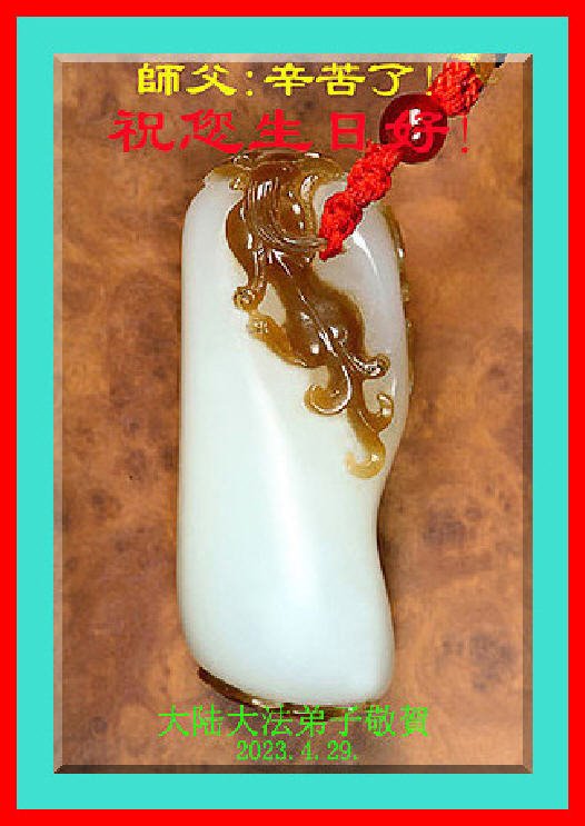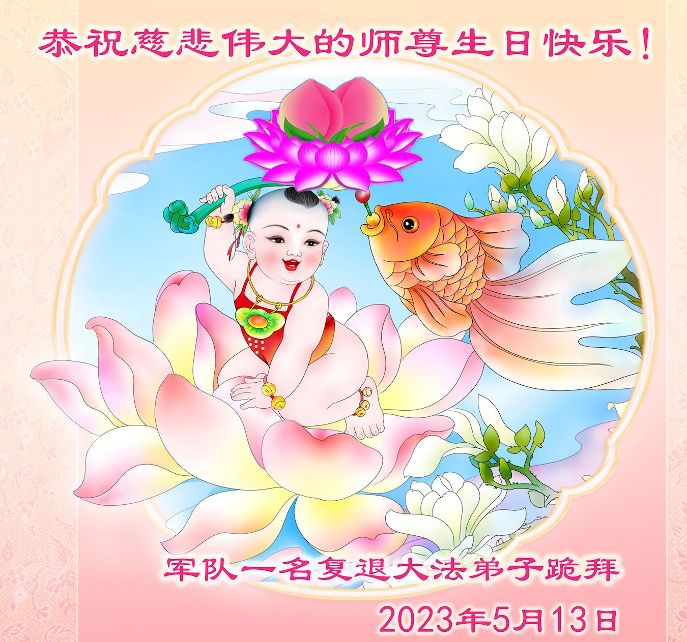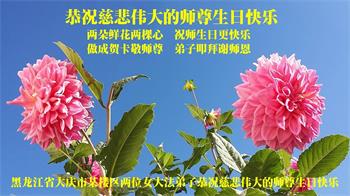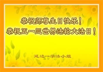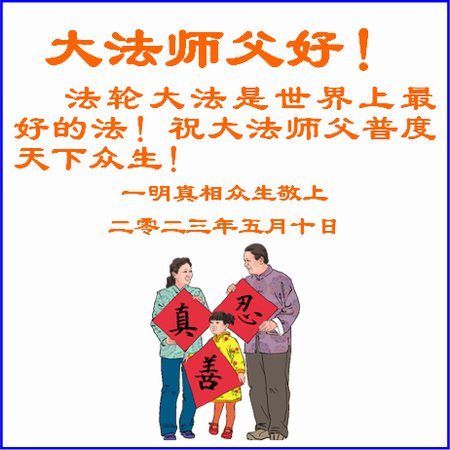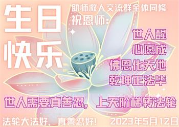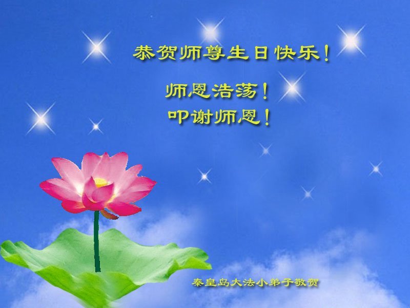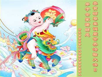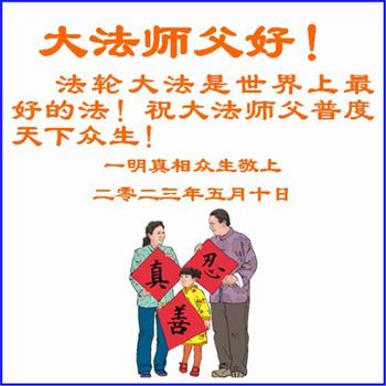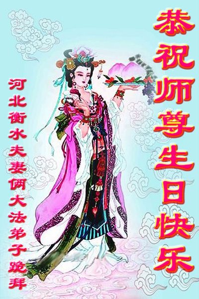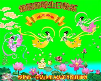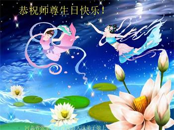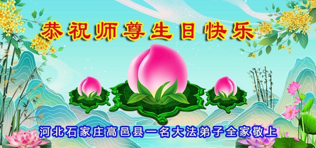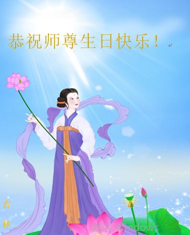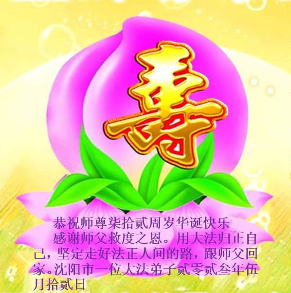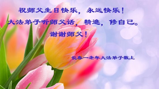尊敬的师父好:我是昔日的小弟子,现在已成为一名青年弟子。是师父您在弟子千钧一发之际,使弟子躲过了一场车毁人亡的大劫。弟子感恩师父的救命之恩,弟子今后按照师父的大法标准去做,一定会成为一名合格的大法弟子。谢谢师父的保护与怜慈!祝愿师父生日快乐!