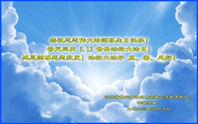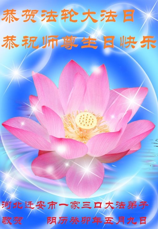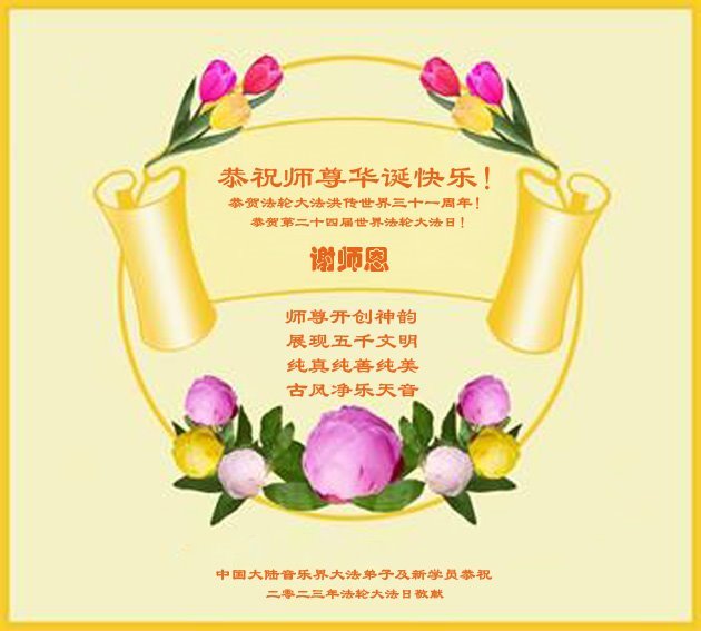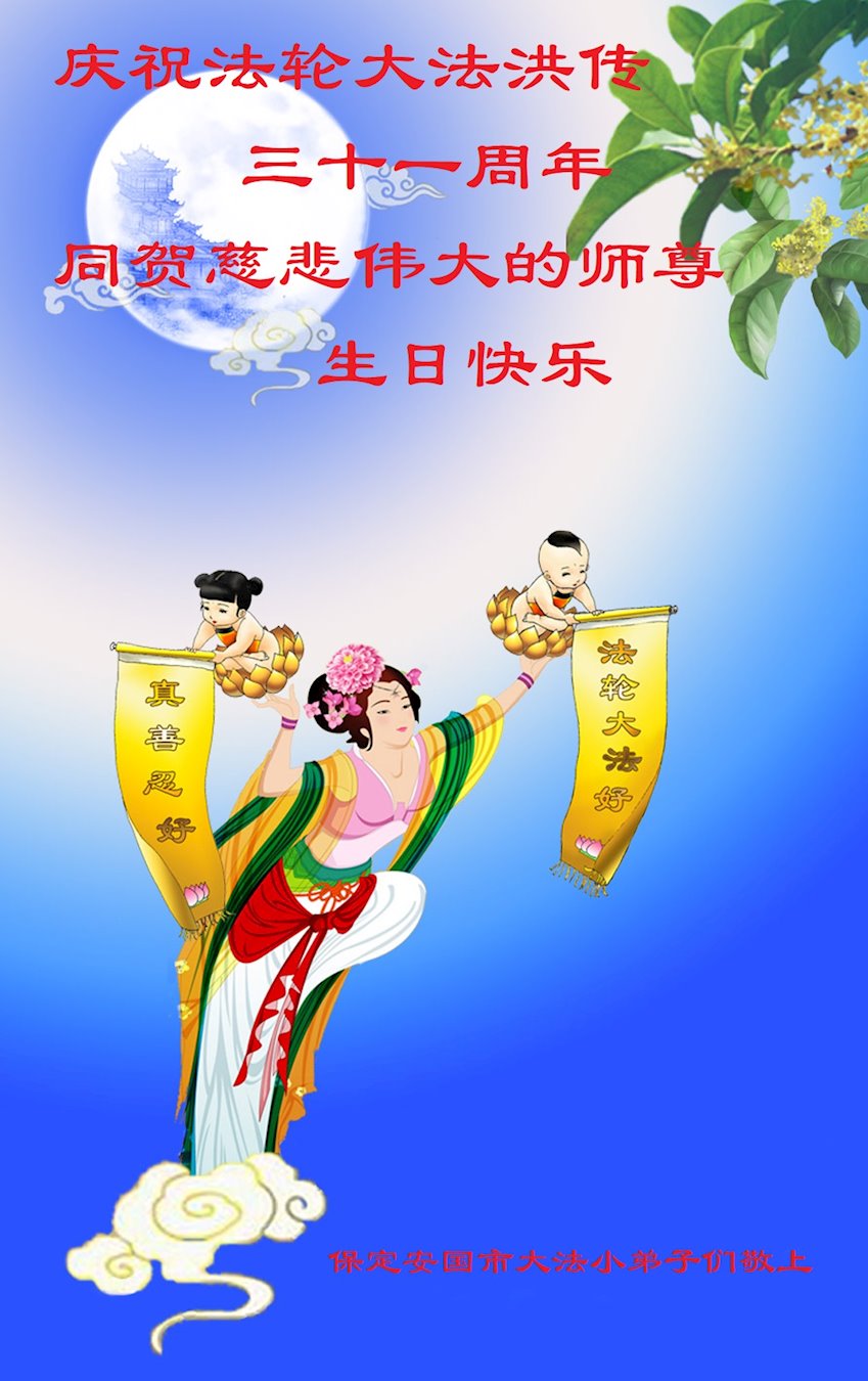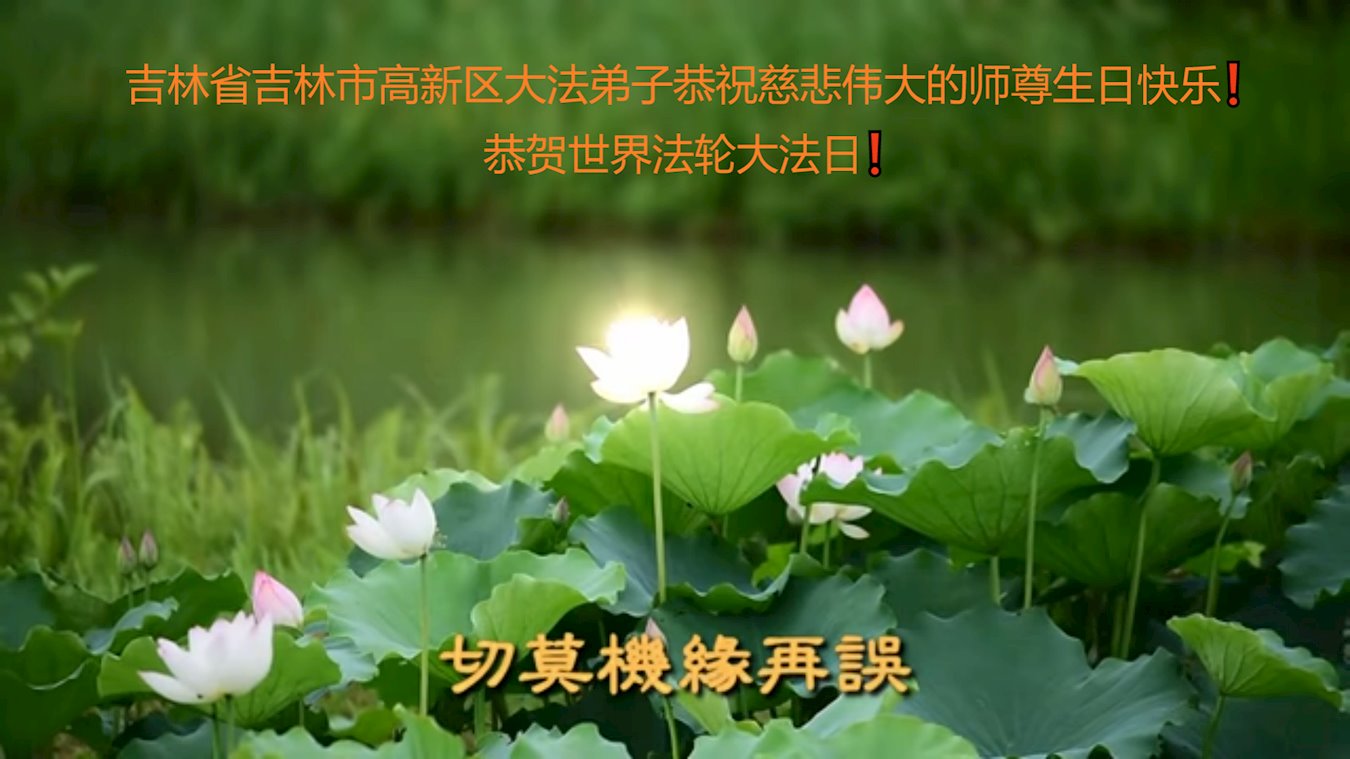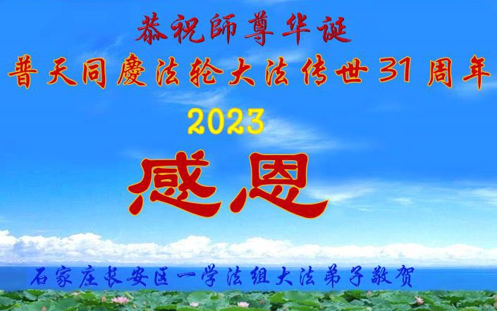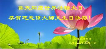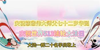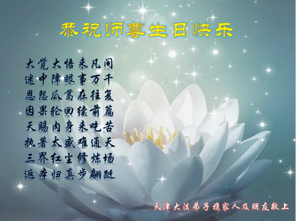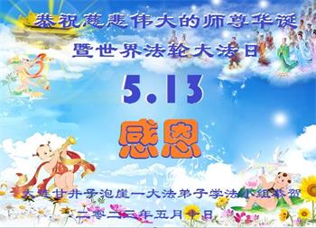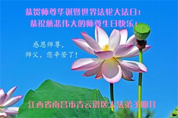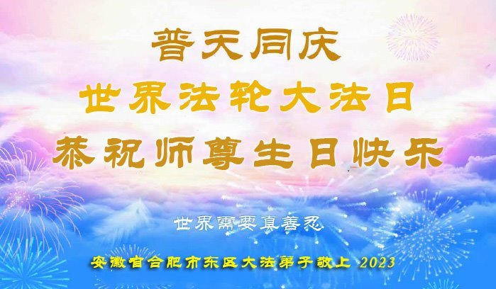 在世界法轮大法日到来之际,中国科技大学全体大法弟子敬贺师尊七十二岁华诞!庆贺法轮大法洪传三十一周年!感恩师尊的慈悲救度!感恩师尊为弟子们的一切付出承受,弟子们才能在大法中修炼、得度,生命才能得以提升,返本归真,重返家园。