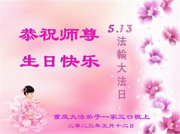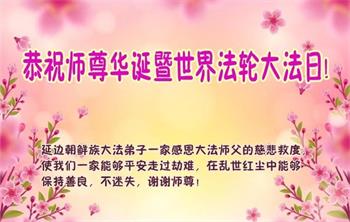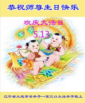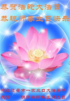 河北承德地区一青年大法弟子携家人,感谢师尊慈悲救度,恭祝师尊华诞!愿师尊多一些欣慰,少一些操劳。