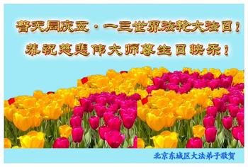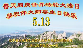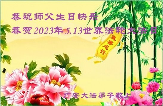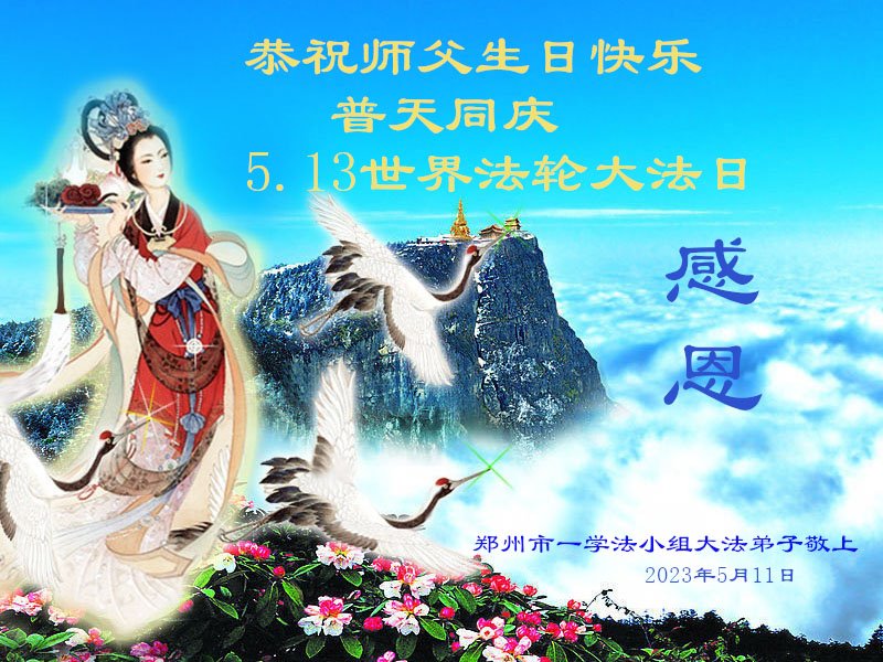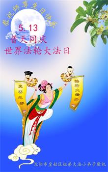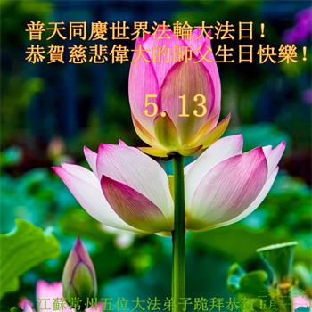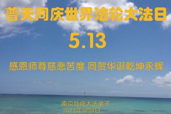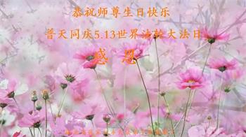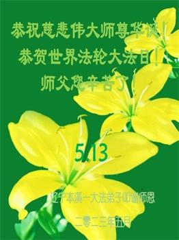 在5月13日世界法轮大法日到来之际,我作为一个大法弟子,能与全世界大法弟子庆祝这美好的,殊胜的世界法轮大法日,是多么激动人心的时刻,是多么令人难忘的时刻,是多么让我们每一个大法弟子都值得骄傲与幸福的日子。我会永远记住这殊胜5月13日,世界法轮大法日!