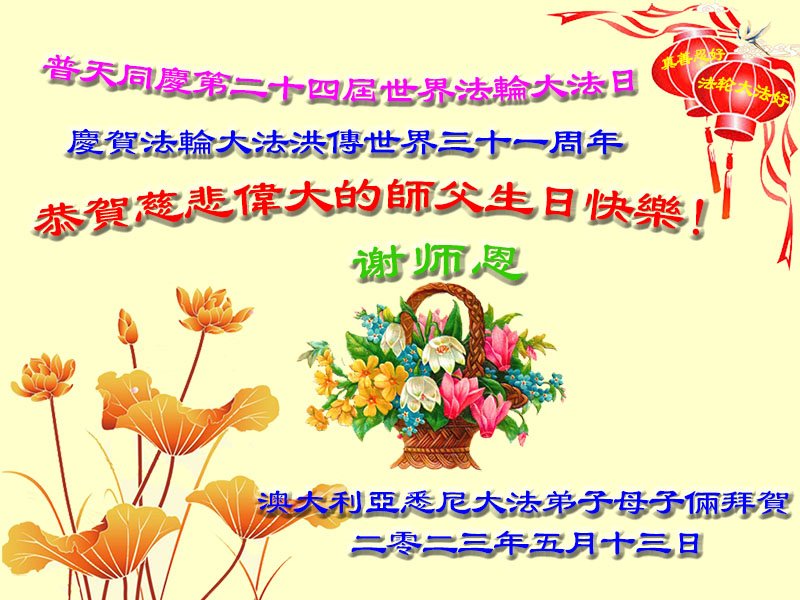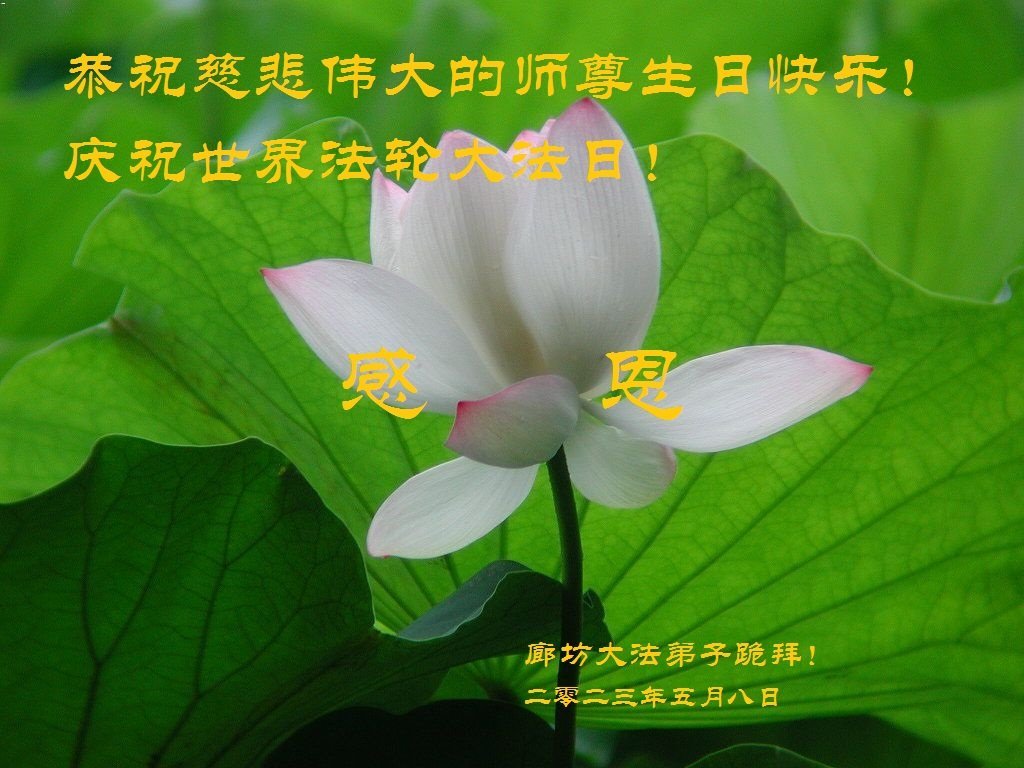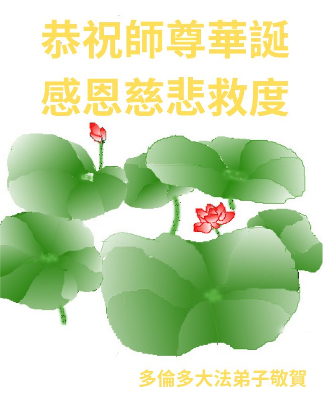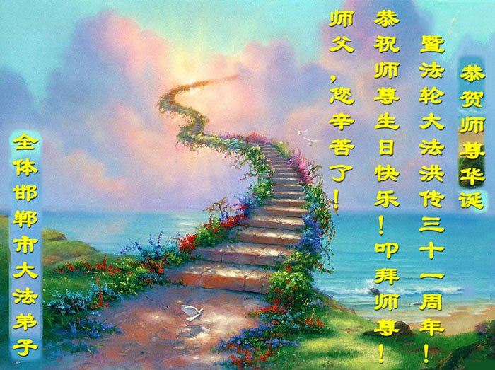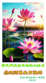 在茫茫人海中,在生生世世里,得遇正法,幸感师恩浩荡!复杂的环境考验着心性,走过的每一步都是在见证历史,积累、沉淀、逐渐蜕变,我知道,脚下是登天的阶梯。不随波逐流,不被环境干扰,我应象勇猛精進的雄狮。在这个最特殊的、亘古未有的历史巨变中,修炼心性,助师正法,汇入洪流中。喜迎、恭贺世界法轮大法日!恭祝师尊生日快乐!