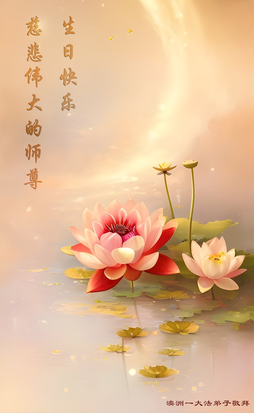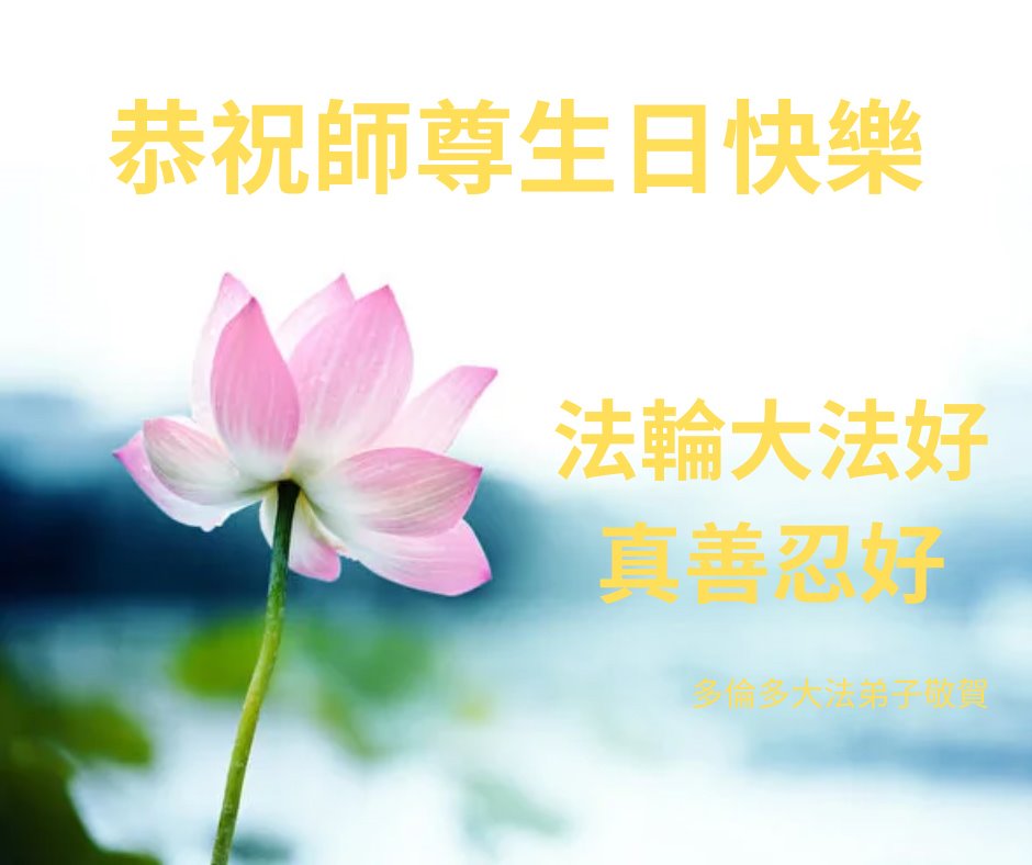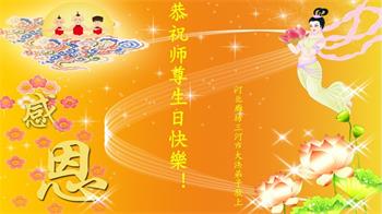 慈悲伟大的师父好,您辛苦了,祝师父生日快乐!谢谢师父的慈悲救度,谢谢师父让我得大法修炼。谢谢师父在修炼路上的慈悲保护与看护,谢谢师父的慈悲点化。在修炼路上,倾注了师父了多少的辛苦与心血。
