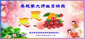 他说:“借着这个机会,虽然我还不是学员,我想跟法轮功创始人李洪志大师说:‘我衷心感谢您,祝您生日快乐!’”