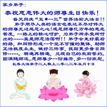 ![]() 图12:大陆高中老师翟德云:祝李洪志大师生日快乐 |