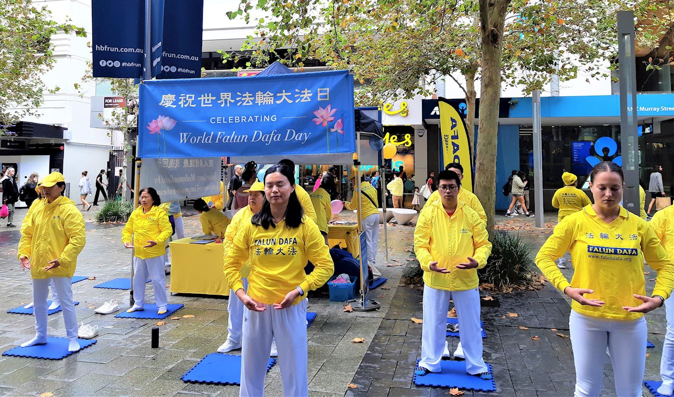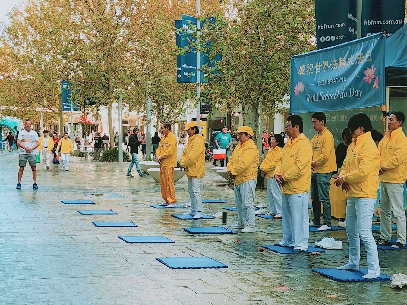 ![]() 图1:法轮功学员演示五套功法,展示大法的美好 |