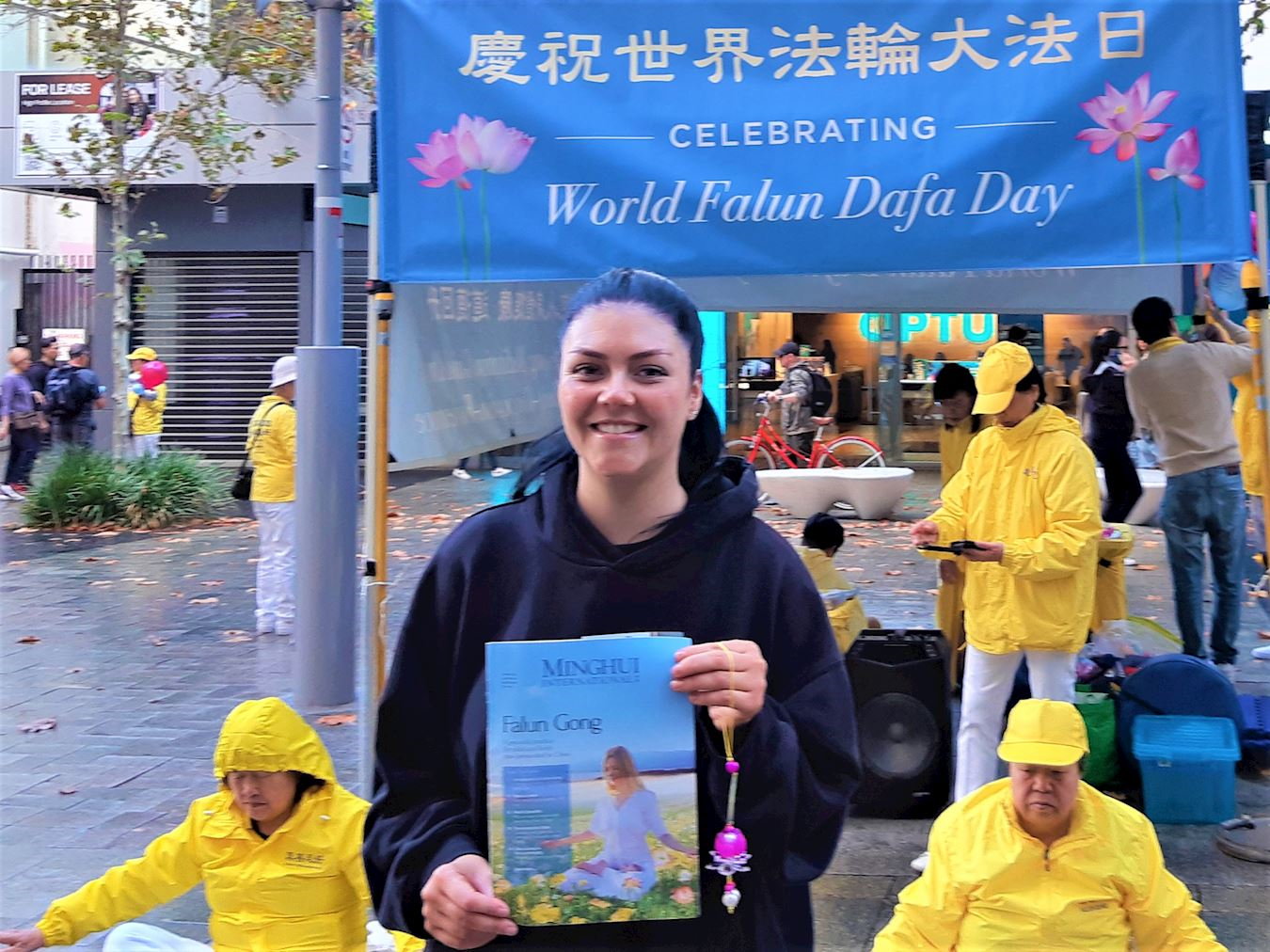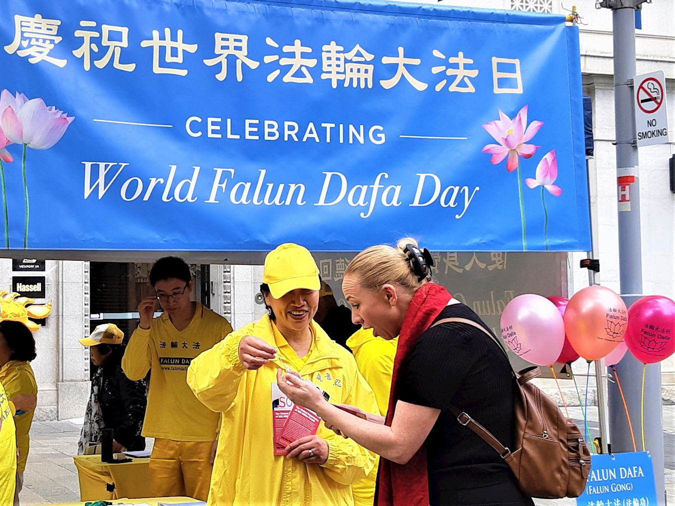 “感谢您与我们分享世界法轮大法日,我们非常喜欢。这让我的心感到非常平和,我对这个世界充满希望。”