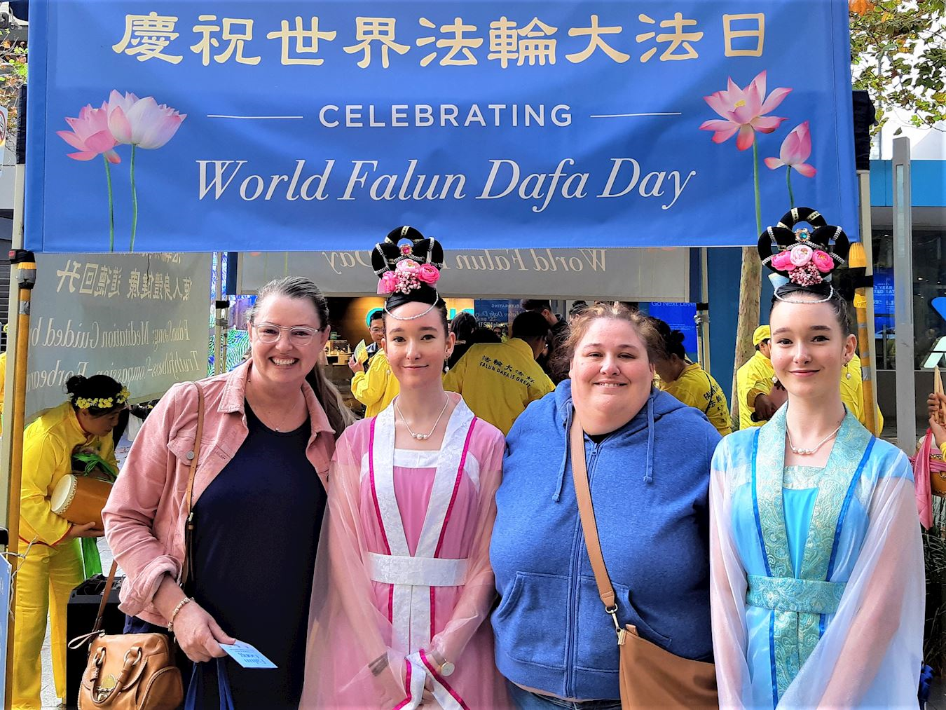 达莉亚·罗杰斯(Daria Rogers)和丹妮尔(Danielle)在观赏完法轮功学员的舞龙和腰鼓表演后,走上前向参加演出的学员们表示感谢,并由衷地赞扬他们非常出色的表演。丹妮尔说:“我非常喜欢刚才的表演!10星级!”