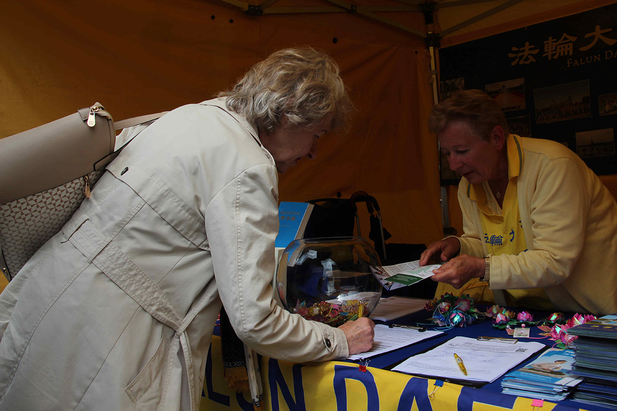 很多路人都无法理解为什么中共要迫害法轮功这样善良和平的团体。得知中共希望控制民众以至每个人的思想,而上亿法轮功学员按照真、善、忍修炼,能自己判断好坏对错,因此中共从一九九九年七月开始了对法轮功学员的血腥迫害,人们纷纷签名要求瑞士政府采取行动,帮助制止迫害,并支持法轮功。