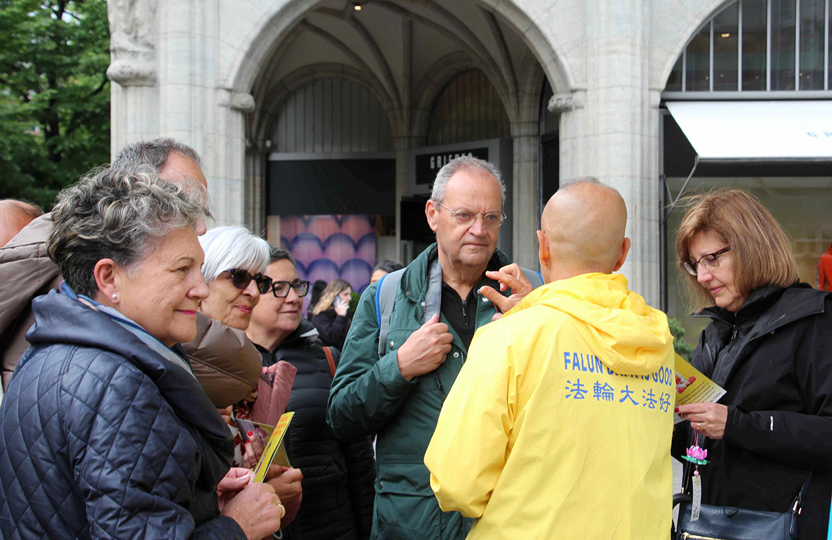 了解到世界各地的法轮功学员在过去的二十四年始终坚持反迫害,通过各种形式让人了解大法的美好,揭露中共迫害的残忍罪行后,法斯宾德(Fassbind)感叹:“有人积极的付出,要求停止迫害,这非常重要。我能感受到法轮功学员全身心的付出,我支持他们。”