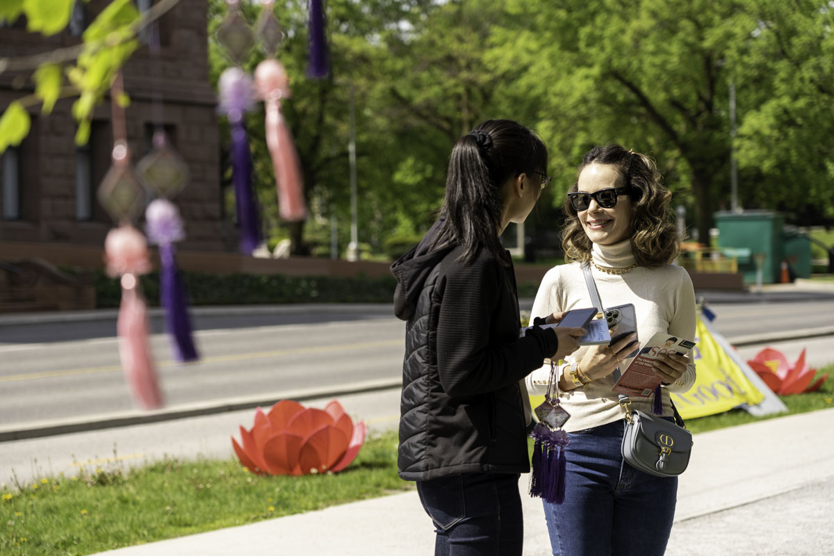 ![]() 图6:路人与法轮功学员交谈,了解真相。 |