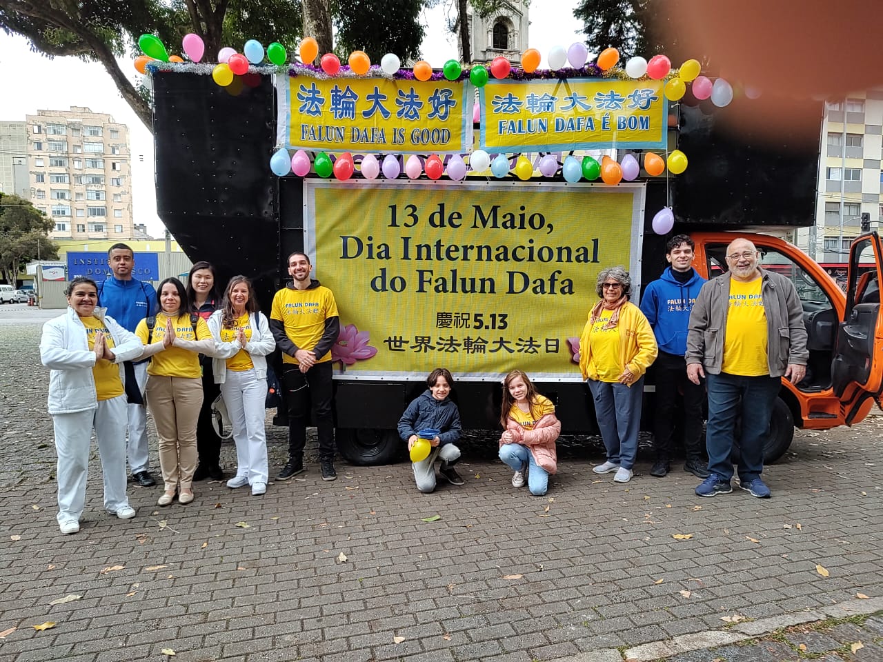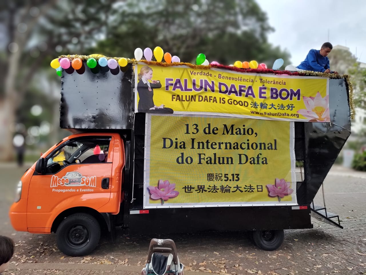 学员们还举办了汽车游行,车上悬挂着写有“5.13:世界法轮大法日”和“法轮大法好”的横幅,车上播放着音乐,沿途经过圣保罗好几个闹市区。