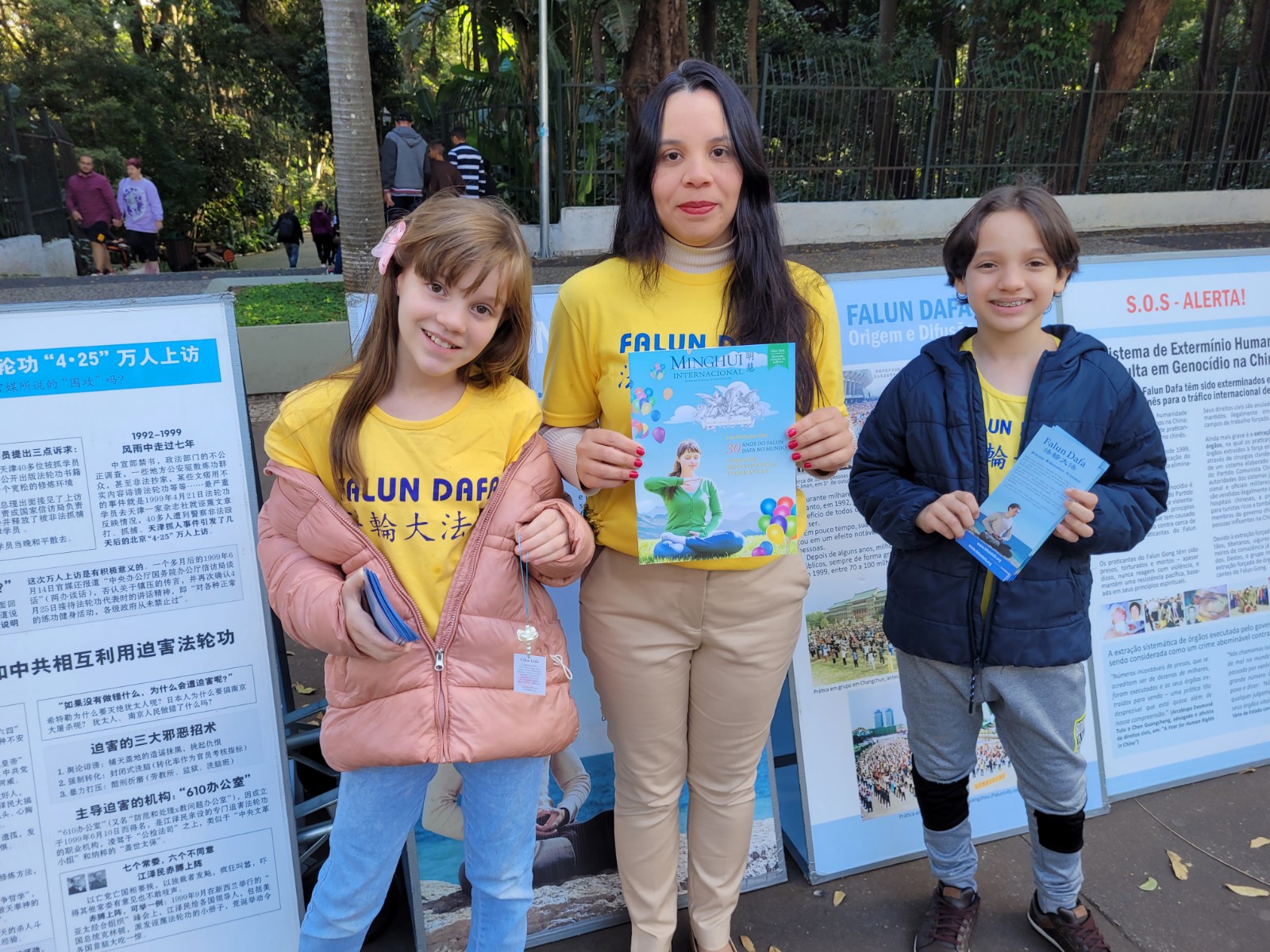 二十六岁的贝尔纳多·舒格斯(Bernardo Schotgues)从事教育行业,同时也是神经心理学在读硕士研究生,二零二二 年 一月开始修炼法轮大法。当天他和另一位同修驱车七小时,从巴西的另一座城市库里蒂巴(Curitiba)来到圣保罗参加活动。