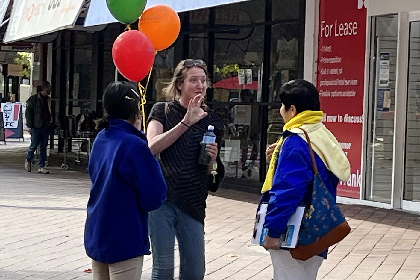 佩塔·纽曼(Peta Newman)在精神健康中心工作,她说;“我以前不知道法轮功,今天看到你们这里有人在炼功打坐,我很想进入试一试,我在寻找强身的方法。听你们介绍,也许这功法适合于我,法轮功是性命双修的功法,可以使人身体健康,道德提升和消除精神压力,这是我们生活幸福的关键。我现在的生活感到压力很重,能够减少压力对我也是很重要的啊。”
