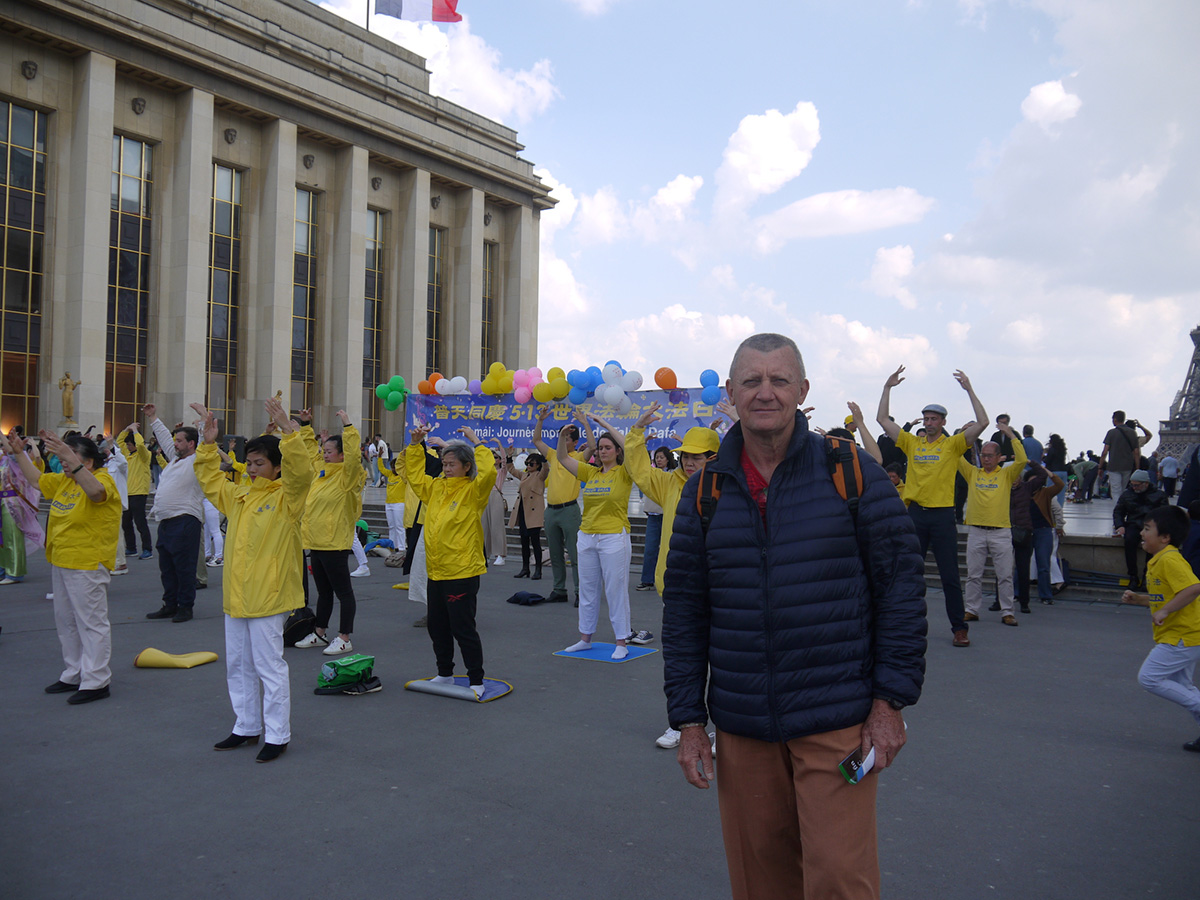来自法国琉璃旺岛的梅尔洛·贝尔纳(Merlo Bernard)欣赏法轮功学员内在的平静