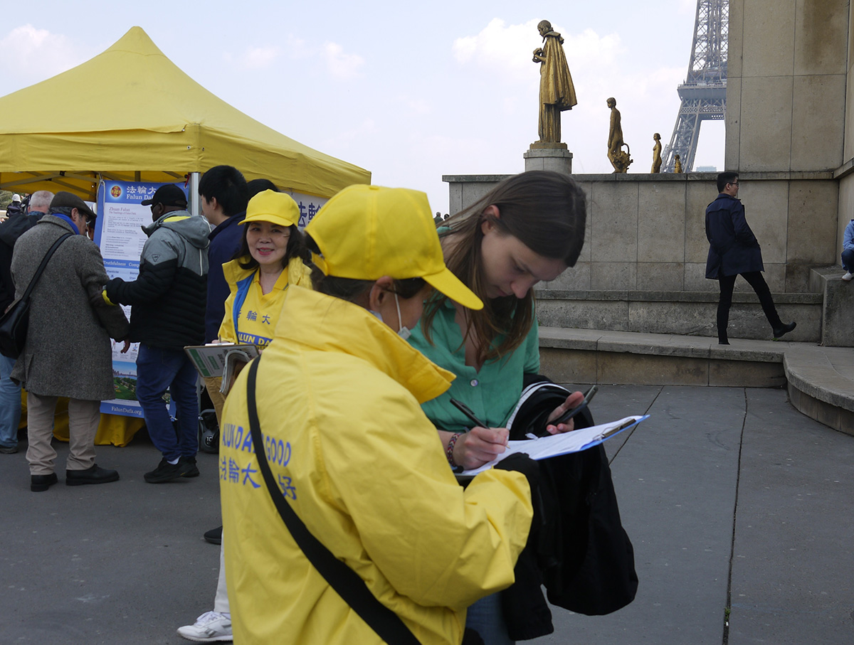 在法国高等商校读书的罗曼·梅扎伊德(Romain Mezaid)也在现场了解了真相。关于发生在中国活摘(法轮功学员)人体器官的罪恶,他说:“我已经在征签表上签名了,一个政府这样做,那真是很坏,必须揭露出来。”