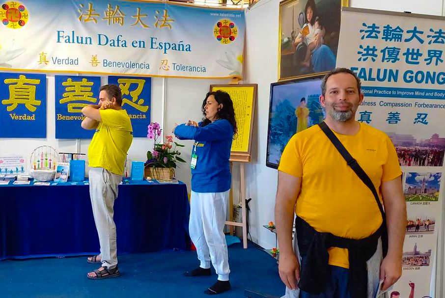 来自萨拉戈萨市的四十九岁的马努埃(Manuel)先生先前已了解到法轮功学员在中国大陆所遭受的迫害。在看到在展馆外炼功的法轮功学员后,他被功法所传递的能量所吸引,于是进入炼功场地亲自体验。他说:“我感到非常舒适、非常放松和愉悦”,他表示回到萨拉戈萨市后会去炼功点继续学炼法轮功。