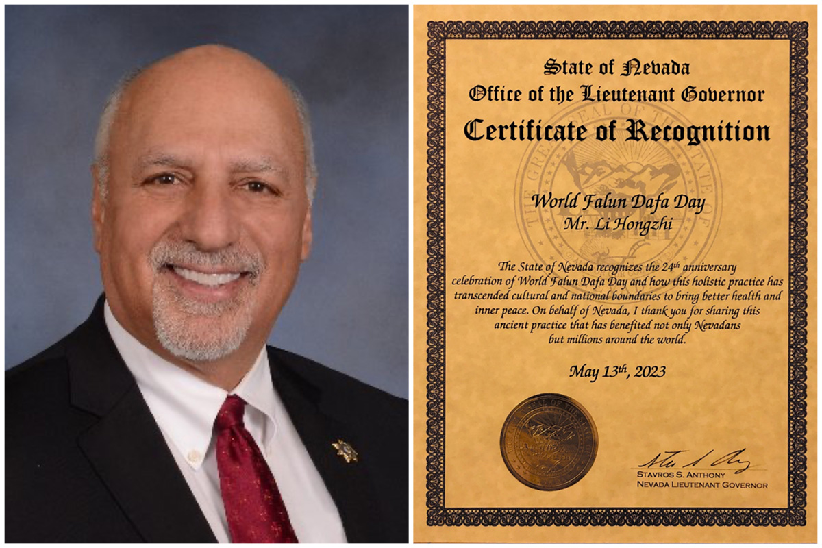 内华达州副州长斯塔夫罗斯·安东尼在给法轮功创始人的褒奖状中说:“在内华达州庆祝世界法轮大法日二十四周年之际,表彰李洪志先生的法轮大法超越文化和国界,给人们带来更好的健康和内心的平静。我代表内华达人民,感谢您分享这种古老的修炼方法,它不仅造福了内华达人,也造福了全世界数百万人。”