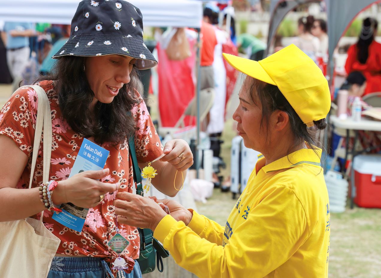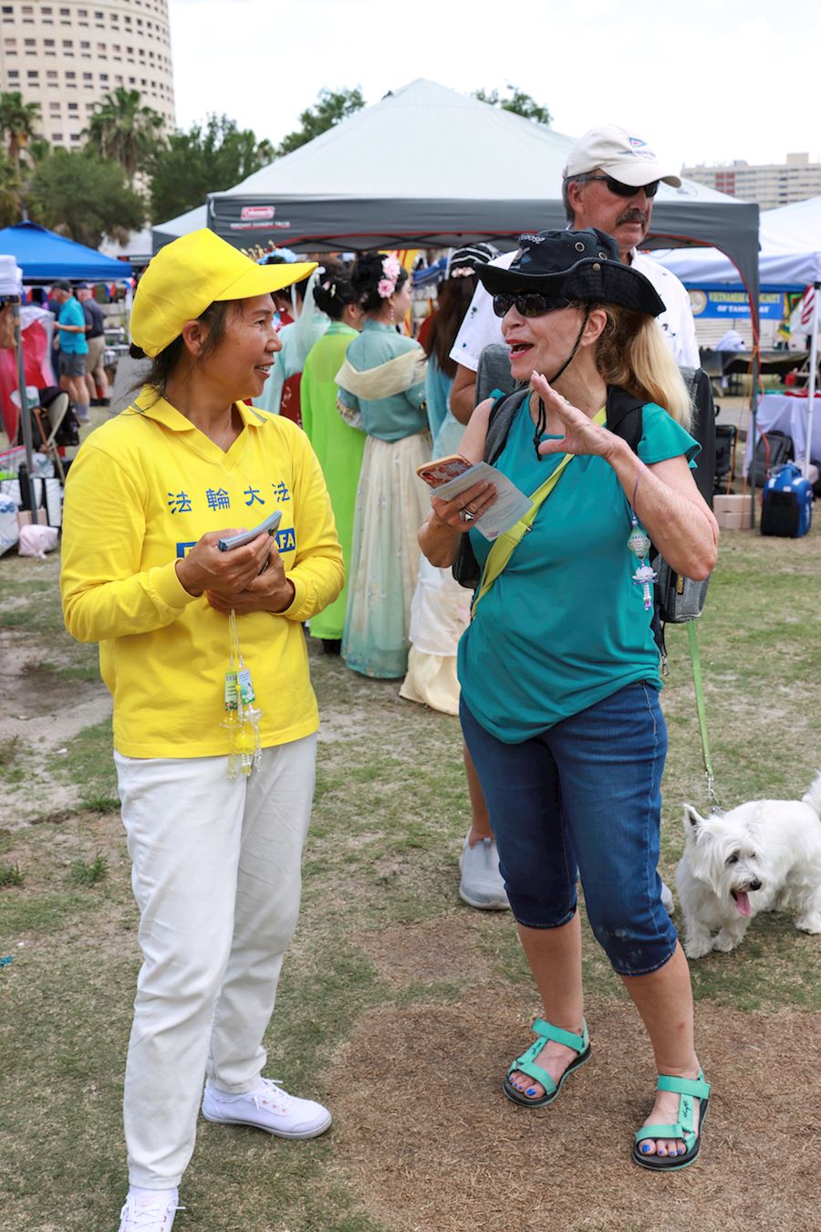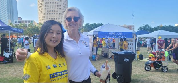 坦帕的亚洲及太平洋岛国节是由坦帕的珍妮·凯斯特(Jane Castor)市长倡议下举办的。活动当天,她也驻足和法轮功学员交谈,学员向她介绍了法轮功真善忍的理念,并赠送给她精美的莲花。