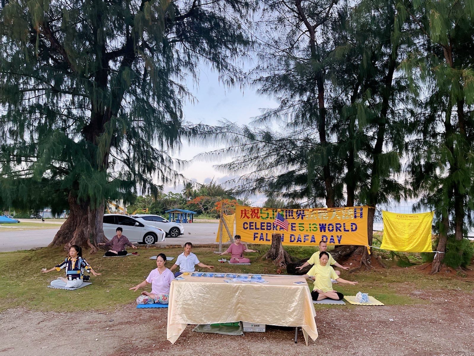 ![]() 图1:晨光熹微,塞班岛部分法轮功学员庆祝5.13世界大法日,晨炼中传递法轮大法祥和宁静的美好。 |