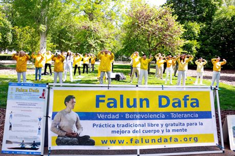 连续三周的周末,法轮功学员们在位于马德里市中心的著名旅游景点:莱蒂罗皇家公园弘法炼功,庆祝世界法轮大法日,恭祝慈悲伟大的师尊生日快乐。同时向世人展现法轮大法的美好及洪传全世界的盛况。