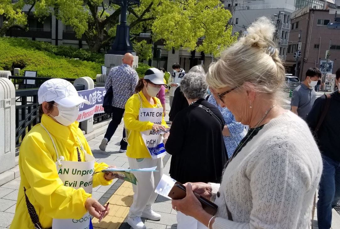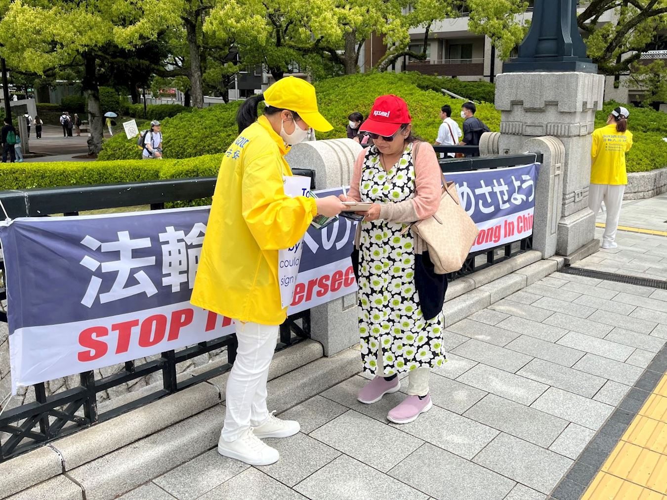 有一位来自福冈市的大陆留学生,法轮功学员给他讲了天安门“自焚”伪案的真相后,他说:“我明白了,我签个名吧,以表示对你们的支持。”之后,他还声明退出中共的团、队等相关组织。
