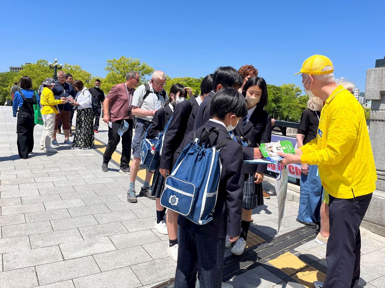 ![]() 图1~6:二零二三年五月三日至十六日,广岛法轮功学员在和平公园向过往游客发送资料、征签各国民众签名支持法轮功学员反迫害活动 |