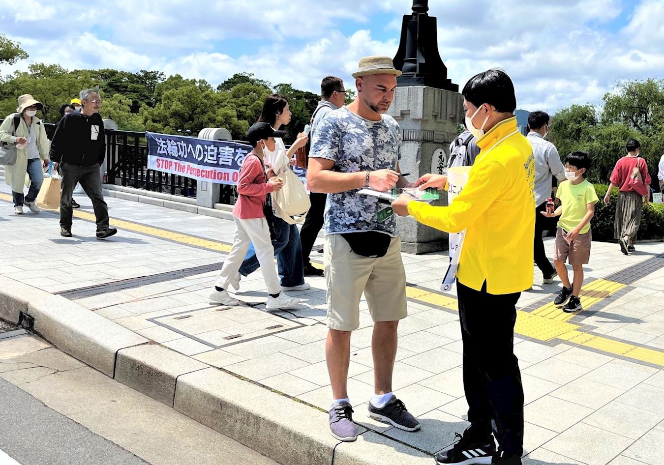 另有两位在美国长大的华裔青年,目前在日本留学。他们说从小到大经常和家人回国,但从没听说过法轮功。当他们听说在中国正在发生着如此严酷的迫害时,都很震惊,马上签了各自的名字。
