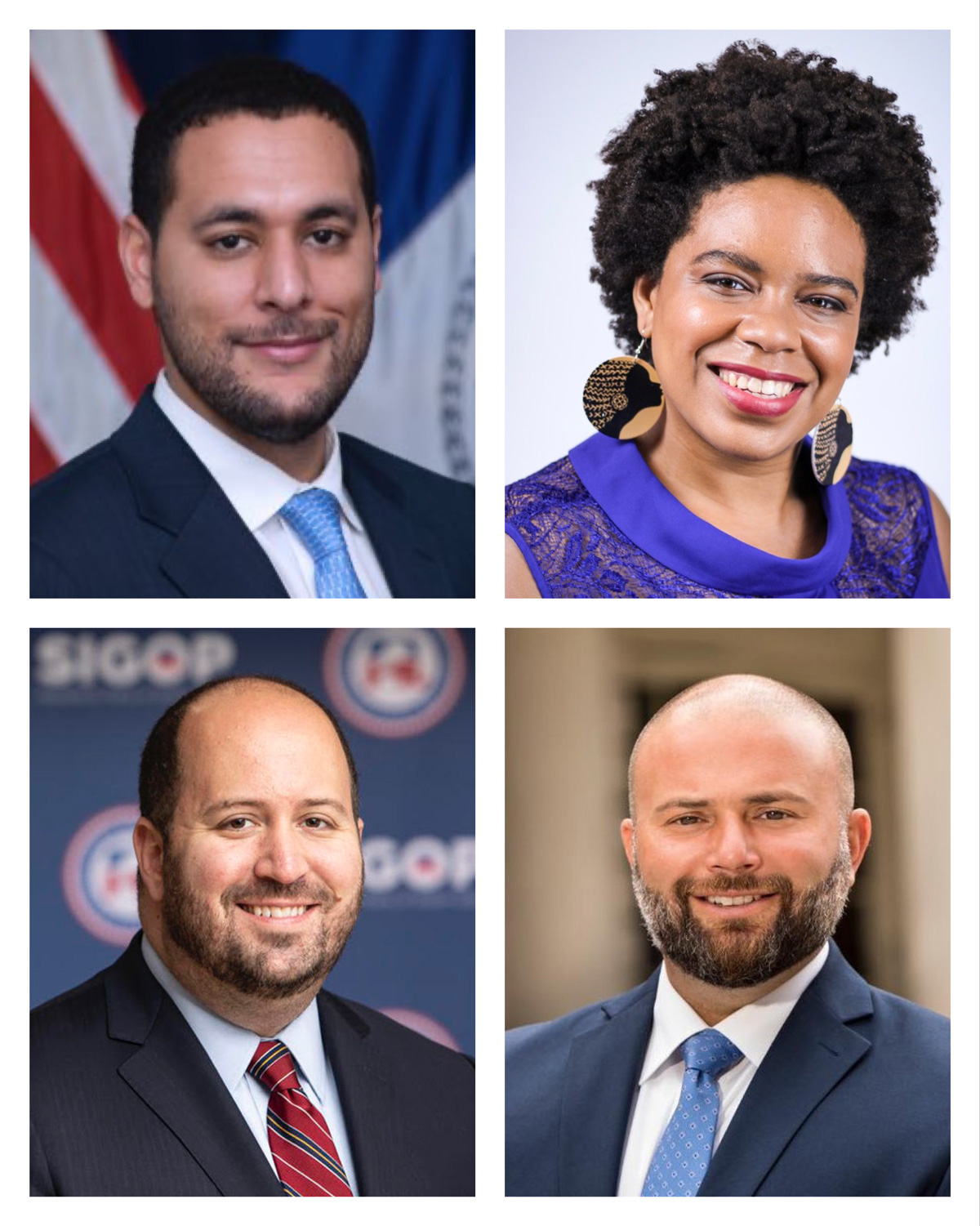 这四位纽约市议员是:第一选区市议员克里斯托弗·马尔特(Christopher Marte)、第九选区市议员克里斯汀·理查·森乔丹(Kristin Richardson Jordan)、第五十选区市议员大卫·卡尔(David Carr)、第五十一选区市议员约瑟夫·博雷利(Joseph C. Borelli)。