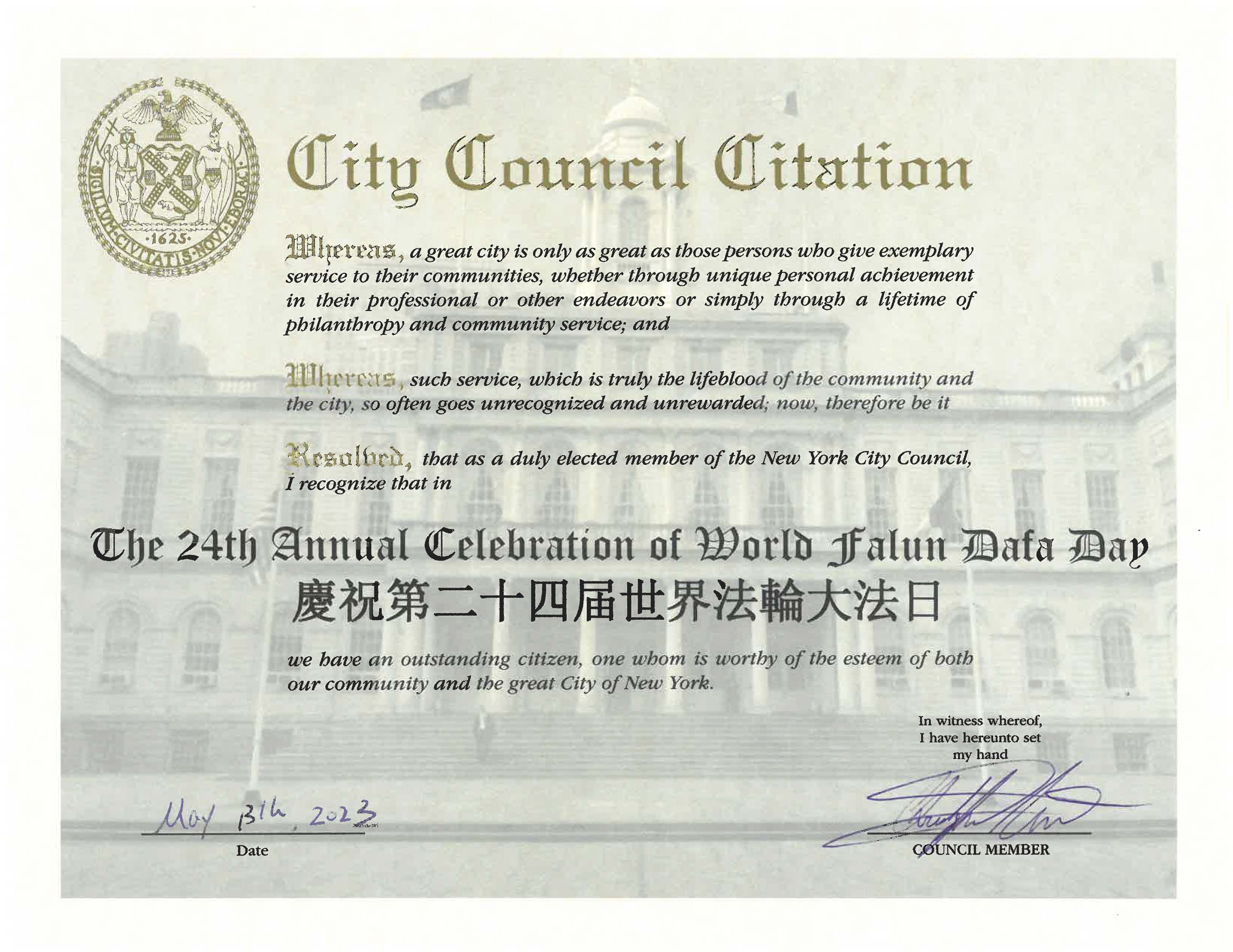 二零二三年五月十三日是法轮大法弘传三十一周年暨第二十四个世界法轮大法日,是全世界许多修炼者欢庆的日子。精神信仰是人类状况和个人健康与福祉的重要组成部分,法轮大法为许多纽约人提供了这一点。
