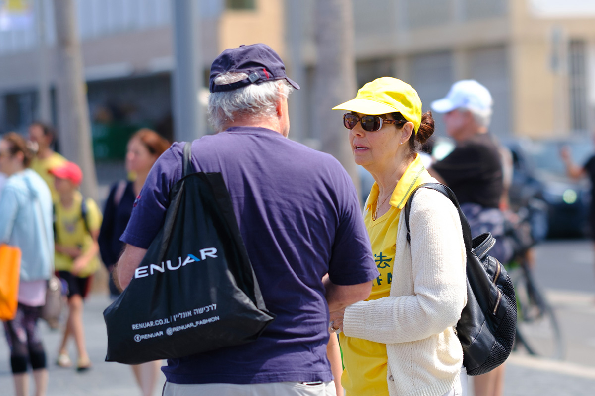 她鼓励以色列法轮功学员说:“我想说,请继续努力,即使你们没有看到人们的反应,人们能感受到这种(正的)能量。”