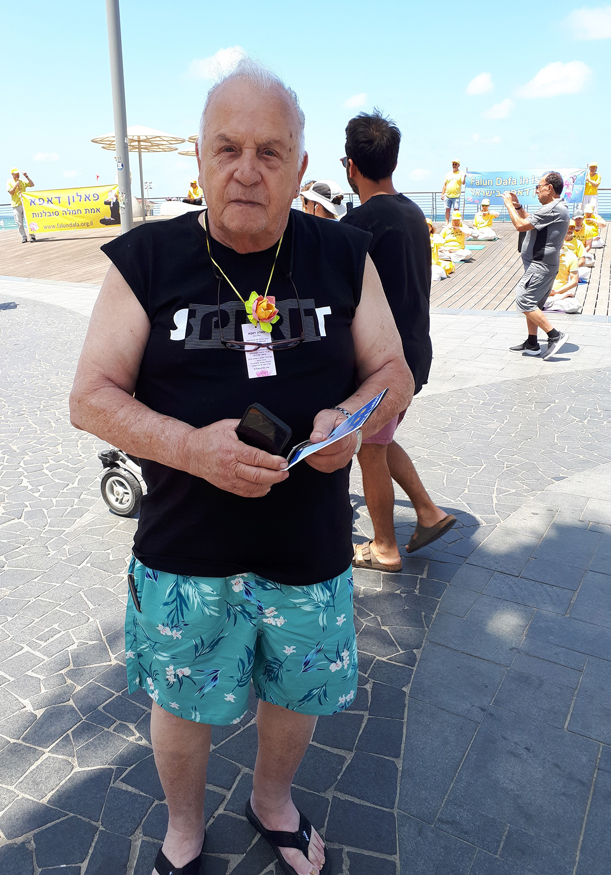 ![]() 图10:退役军人哈伊姆欢看学员们炼功,也表示对中国的法轮功学员遭到中共的迫害表示同情。 |