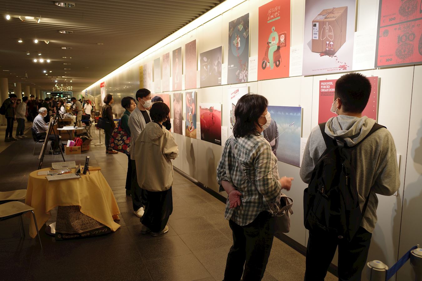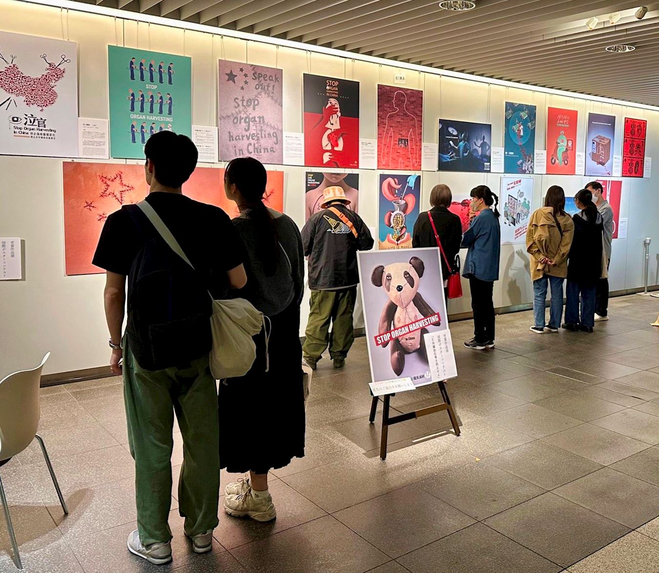 此次展览共展出二十幅揭露中共活摘法轮功学员器官罪恶的海报。展出期间的平日观展者以各大商社职员和学生居多,周末还有不少来自外地或一家人出行的市民停下脚步认真观赏每幅作品,签名呼吁制止活摘器官。许多年轻人对活摘器官的情况关注度很高,远远看到海报就径直走来仔细聆听讲解,边听边思考,签名后把展品拍下来,表示会分享到社群媒体。