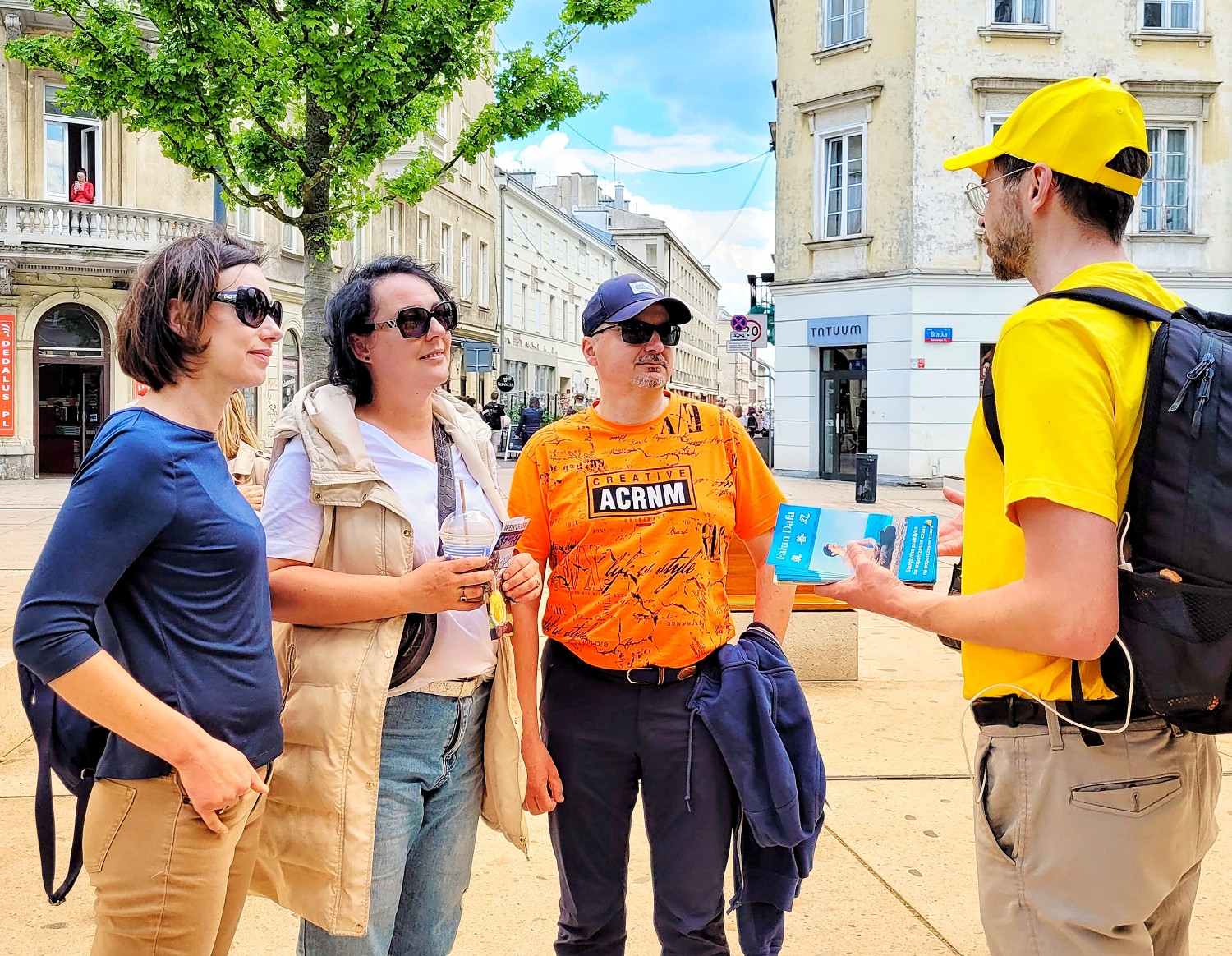 ![]() 图5:人们认真听法轮功学员讲述真相。 |