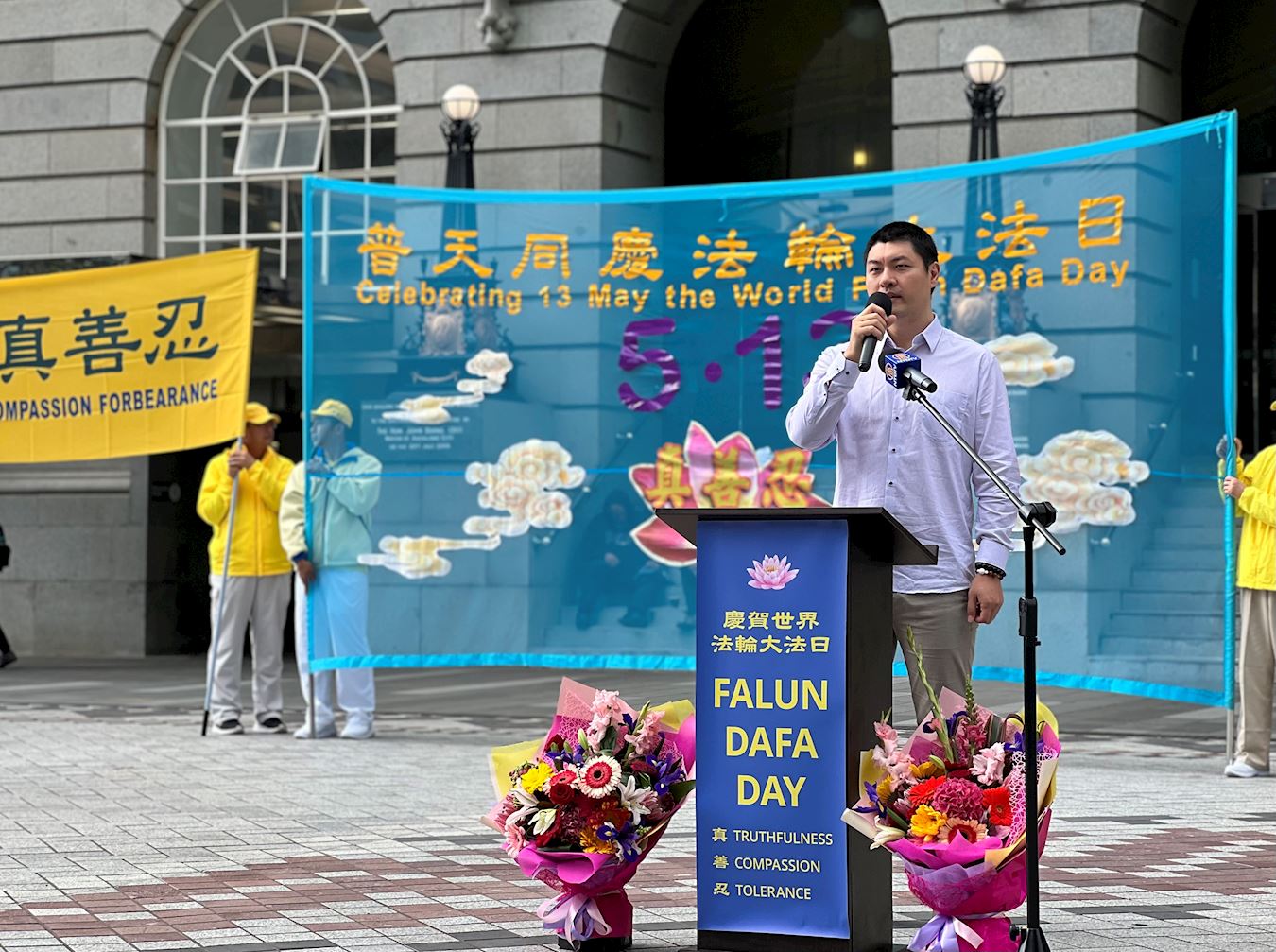 新西兰华人张洛奇在庆祝活动上说:“我首先祝李洪志先生生日快乐!李先生创立了法轮功,教会世人真、善、忍。他的境界非常高。”