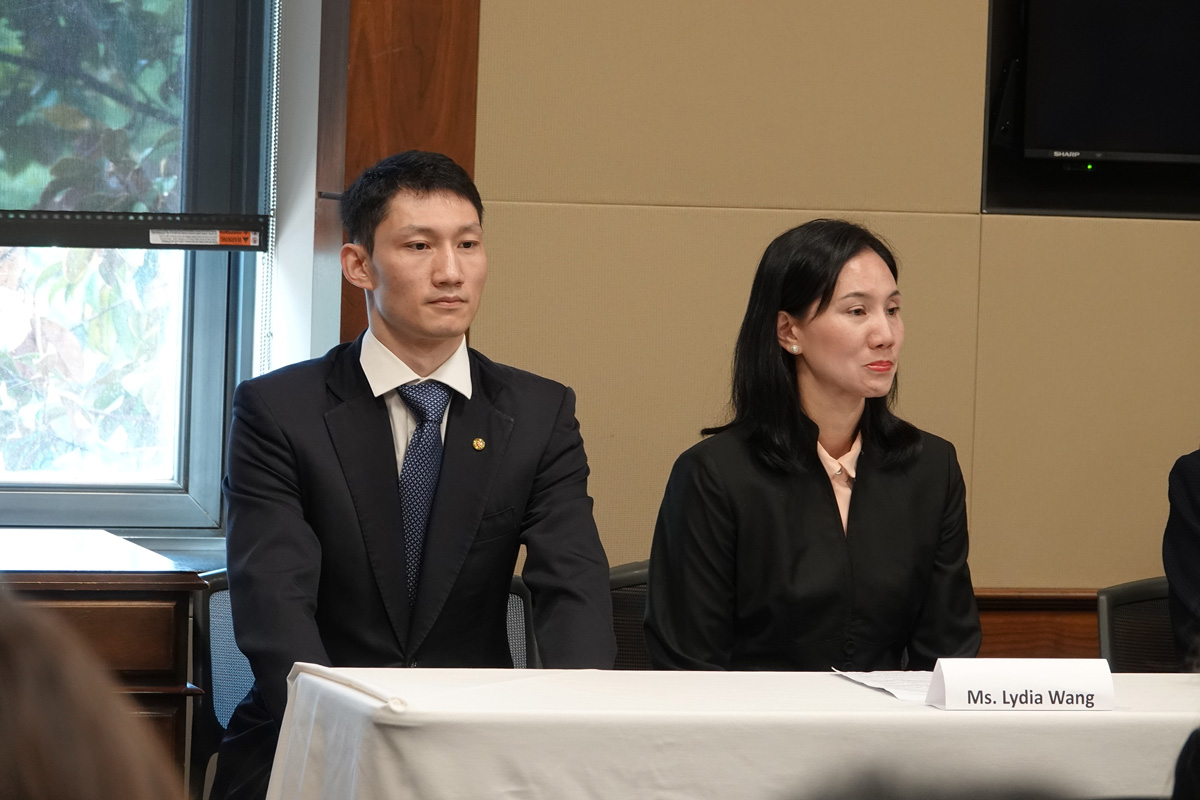 随后,在美国国会参议院哈特办公大楼举行的圆桌会议上,美国国务院宗教自由大使侯赛因(Rashad Hussain)听取了法轮功学员王珊珊讲述全家人遭受中共迫害的经历。