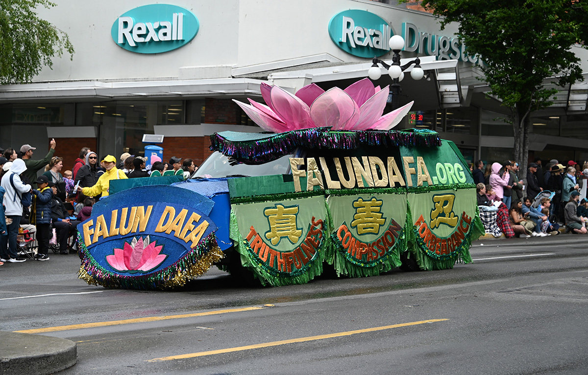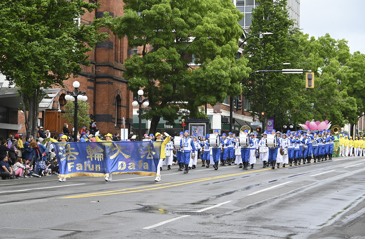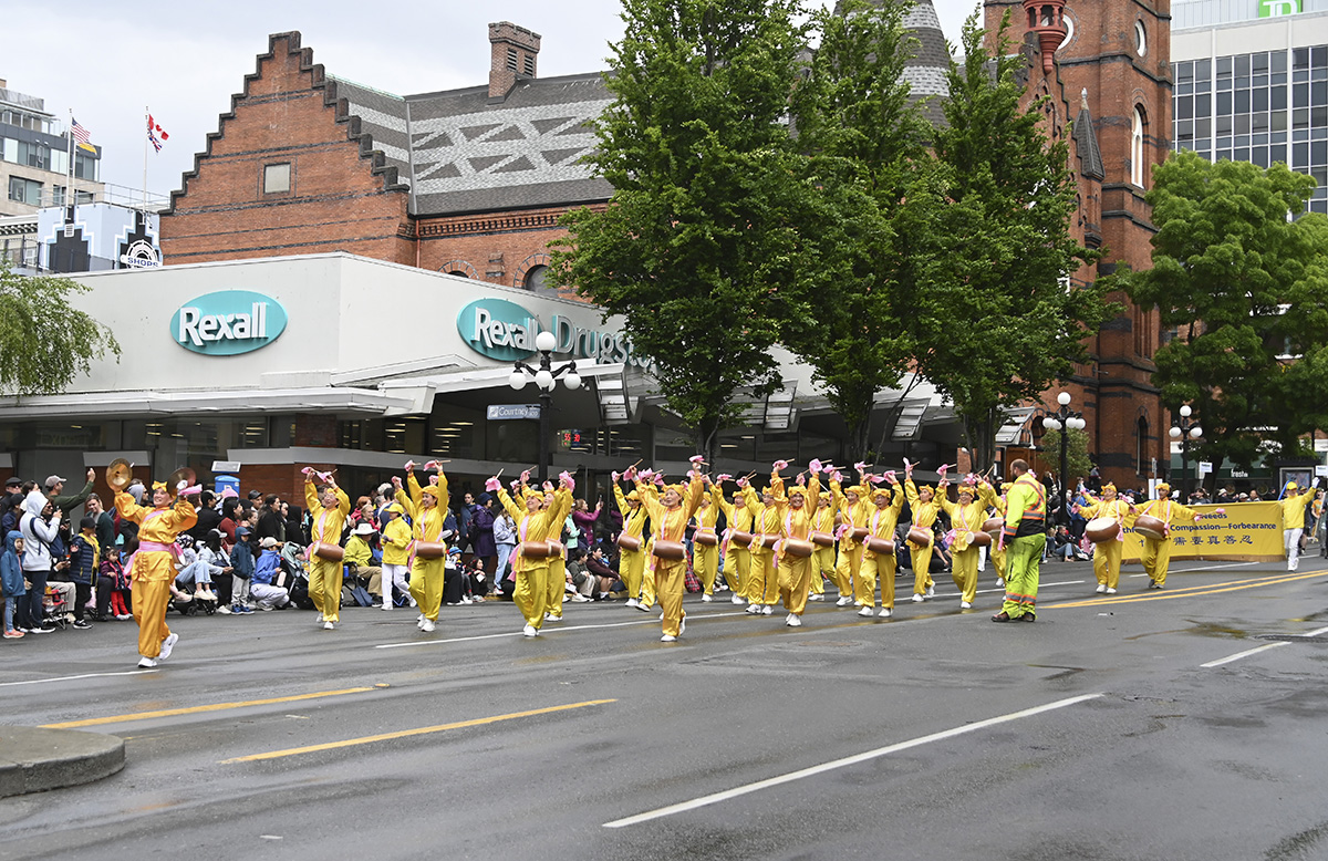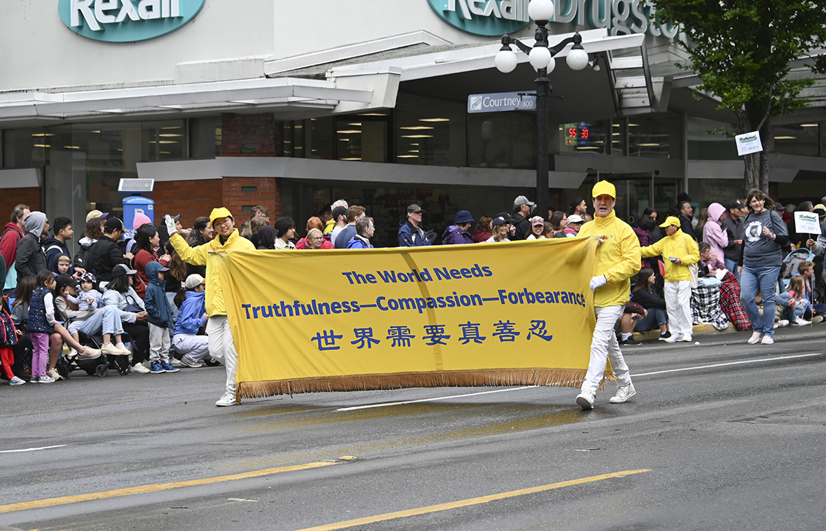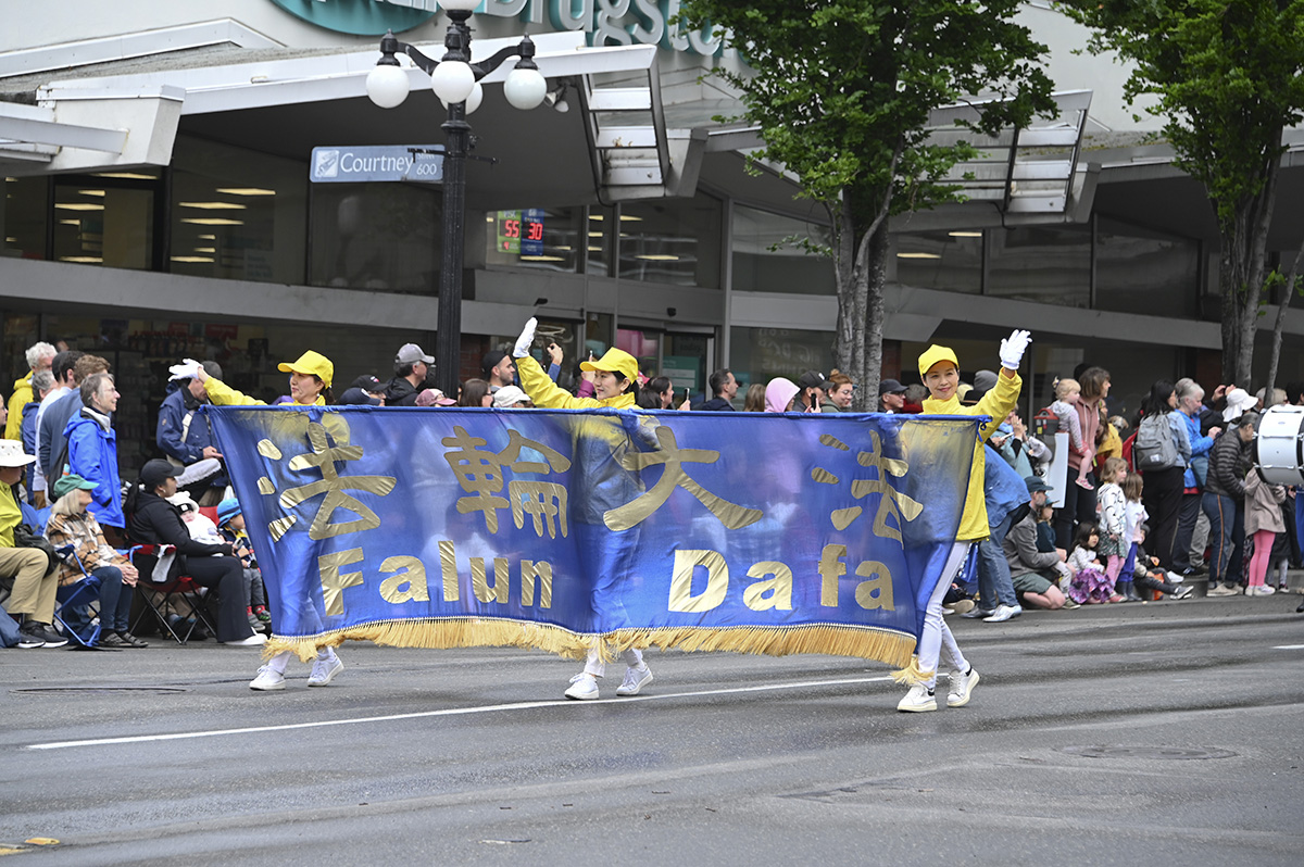![]() 图1~5:二零二三年五月二十二日,加拿大卑诗省首府维多利亚市举行第一百二十三届维多利亚日游行,其中法轮功的队伍深受民众欢迎。 |