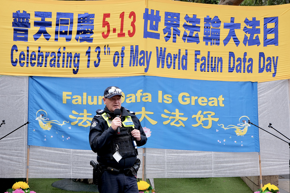 白马市警局(Whitehorse Police Station)高级警官、犯罪防控官员戈加蒂(Brendan Gogarty)表达了对“世界法轮大法日”集会活动的欢迎和支持。
