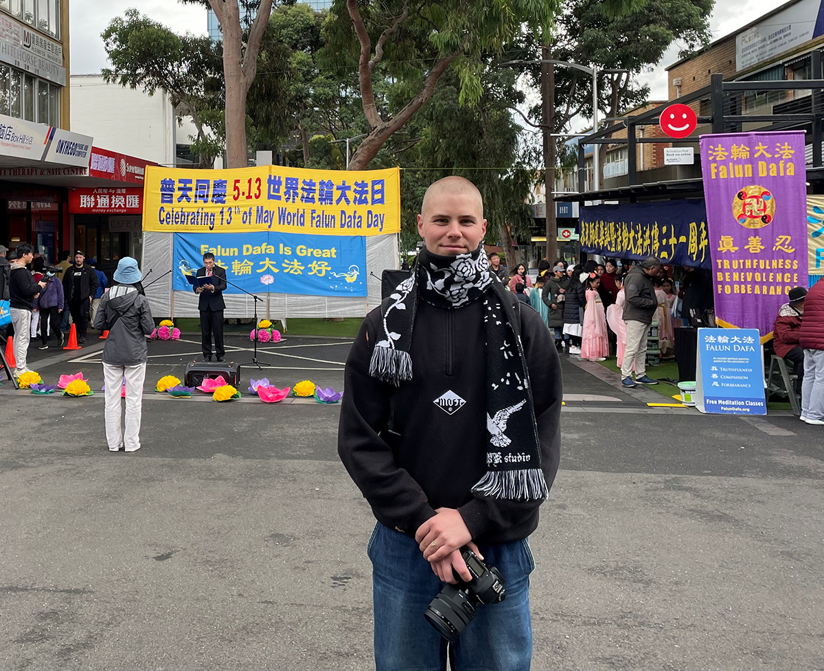 二十六岁的威尔・菲利普(Will Philipp)是一位自由摄影师,活动期间拍摄了很多照片,他表示:“法轮功团体是很好的和平团体,我很高兴今天能参加庆祝活动。”