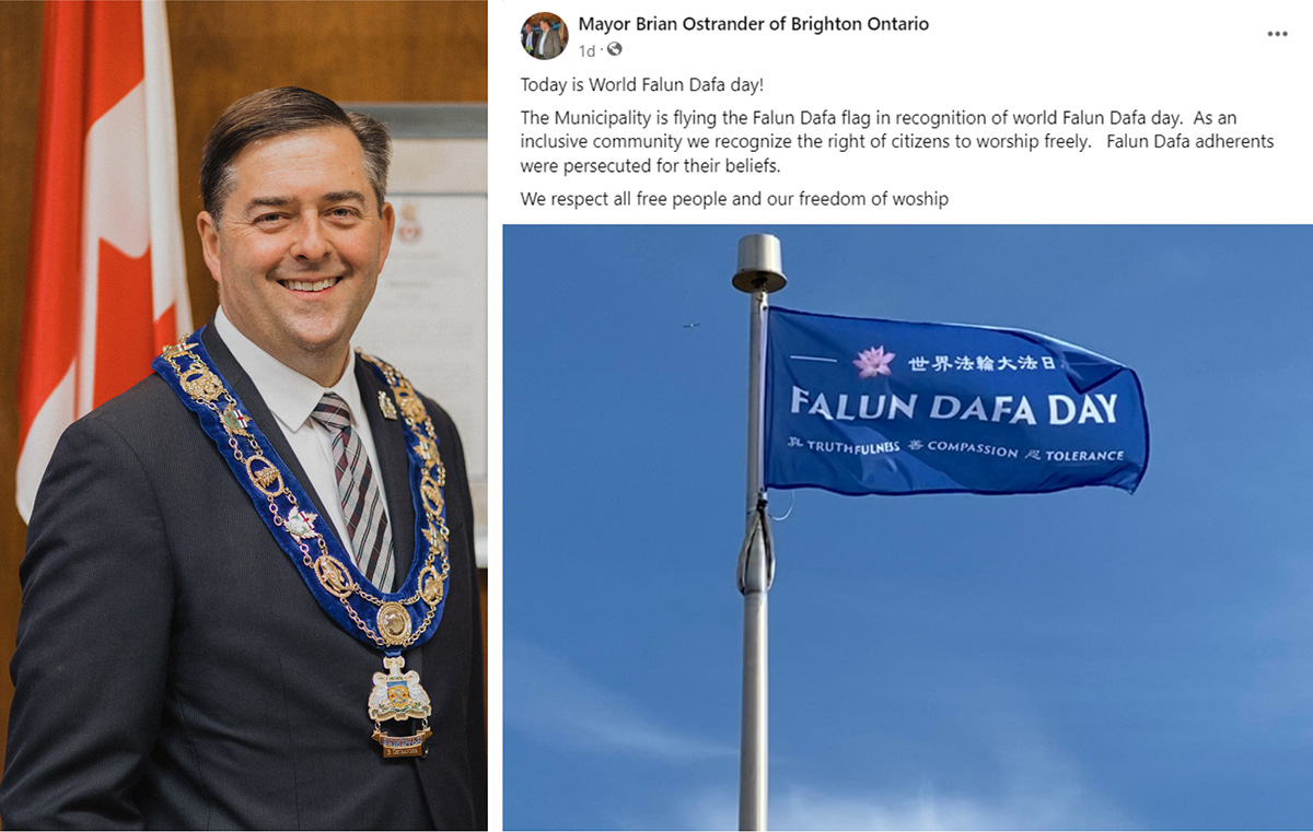 安省莱顿市市长布赖恩·奥斯特兰德(Brian Ostrander)在五月十三日亲自升起法轮大法旗帜,以此庆祝法轮大法弘传三十一周年。