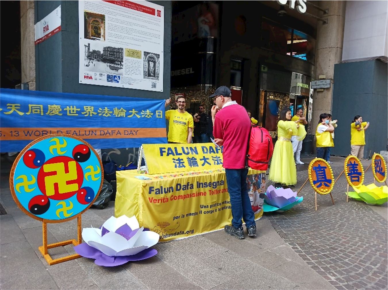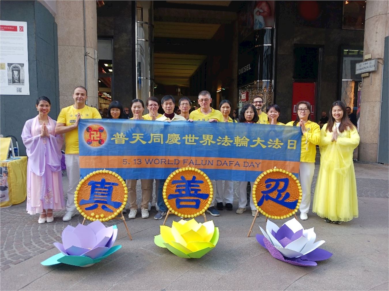 ![]() 图1:米兰法轮功学员庆祝世界法轮大法日 |