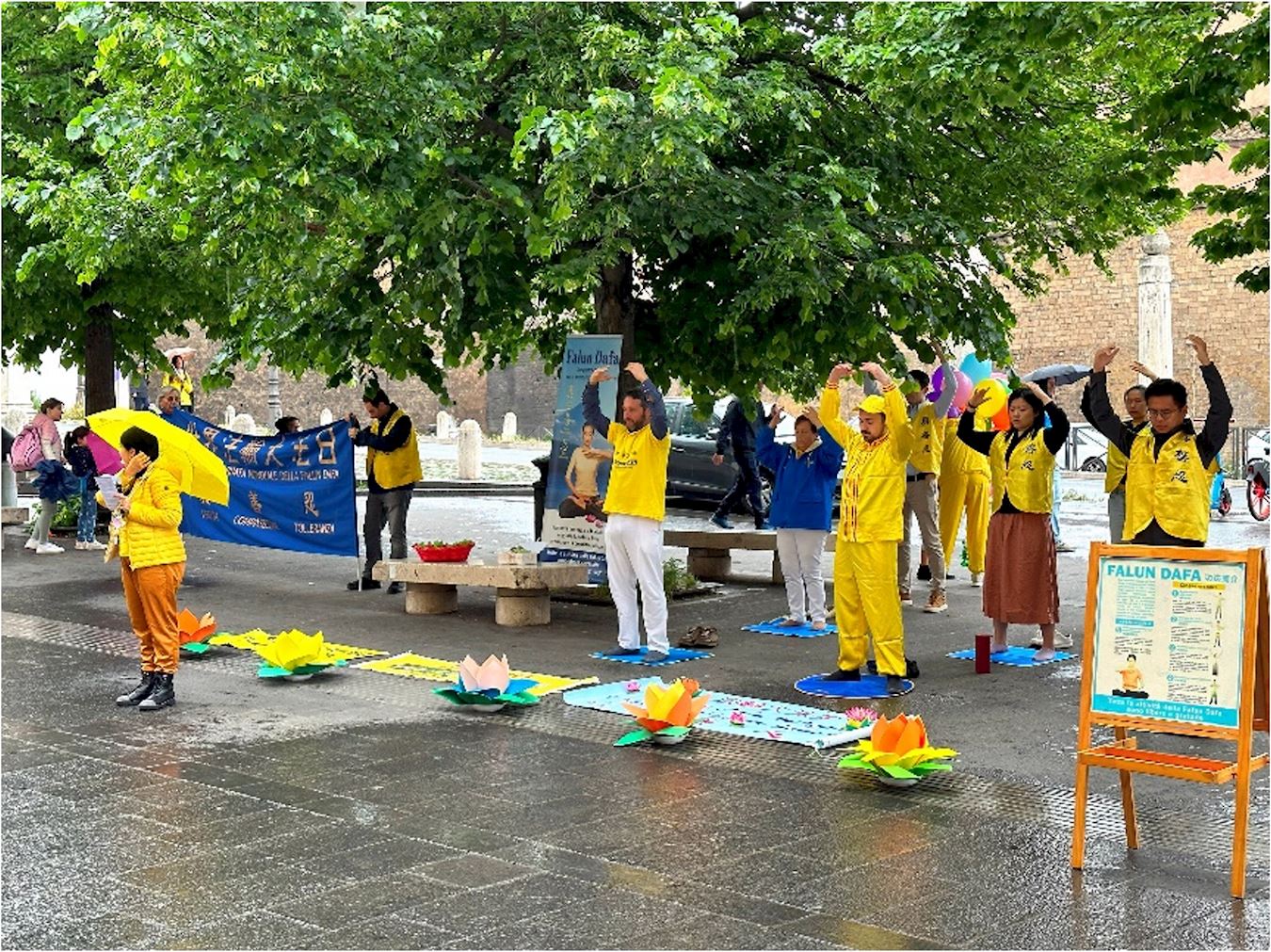 这些活动包括:法轮大法功法演示,向路人讲真相,发放资料,一些城市的学员们还向民众征集签名制止中共对法轮功的迫害。请愿书由意大利法轮大法学会发起,呼吁意大利政府谴责中共从一九九九年开始并持续至今的对法轮功学员的迫害。