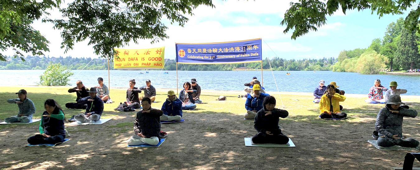 ![]() 图1:华盛顿州西雅图法轮功学员向世人展示法轮大法的静功 |