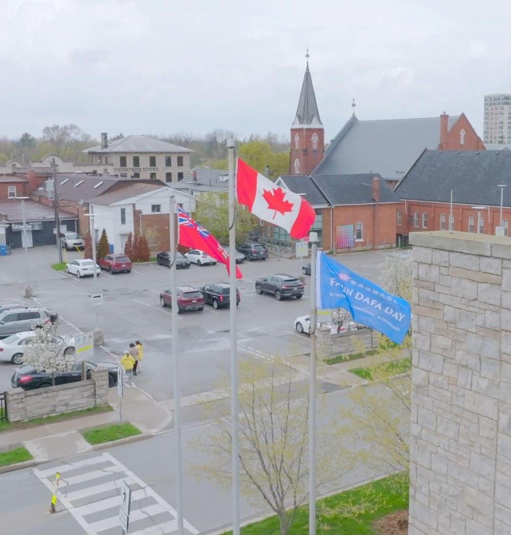 ![]() 图1~6:二零二三年五月一日“庆祝法轮大法日”的旗帜在加拿大安河的米尔顿市(Milton)升起,由市长戈德‧克兰茨(Gord Krantz)主持,旗帜高高飘扬在市政厅,将持续十六天。 |