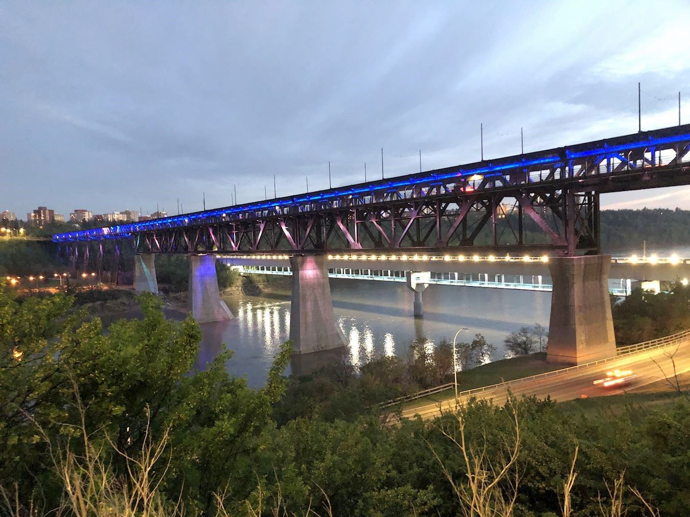 ![]() 图7:五月一日晚加拿大阿尔伯塔省的省会城市埃德蒙顿,也在当地地标大桥亮灯庆祝法轮大法日。 |