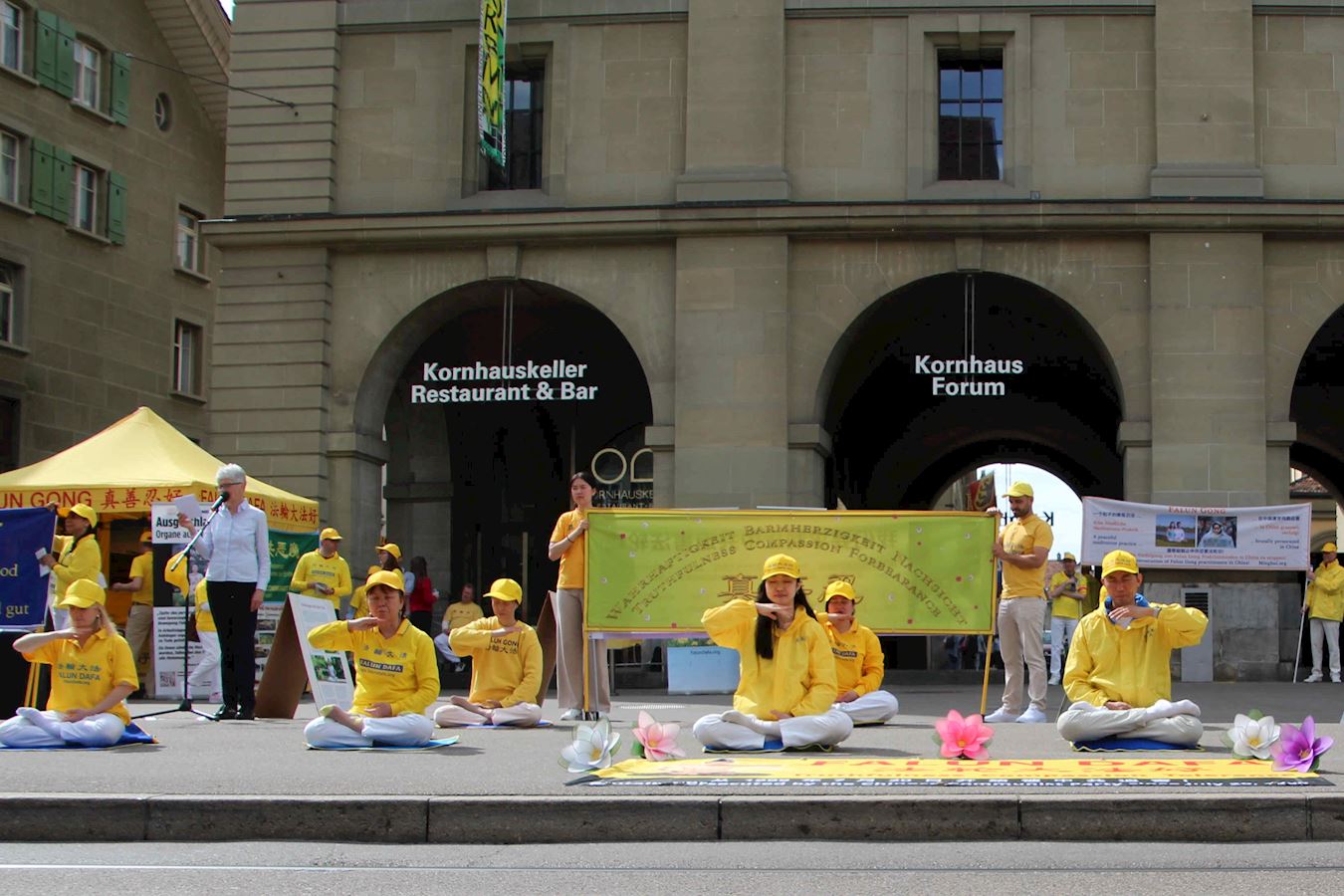 ![]() 图2~5:法轮功学员在伯尔尼闹市区演示功法。 |