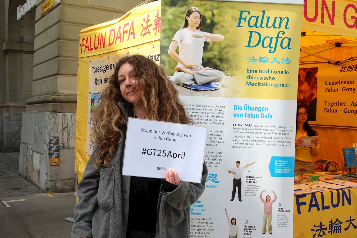 谈及中共对法轮功学员的迫害,甚至活摘法轮功学员的器官的罪行,她认为:“我无法想象有这样的事情发生,如此残忍可怕的迫害。”因此她希望通过自己的签名:“能有更多人来重视,能让人来关注这个话题。瑞士不应该对一切都保持中立。”