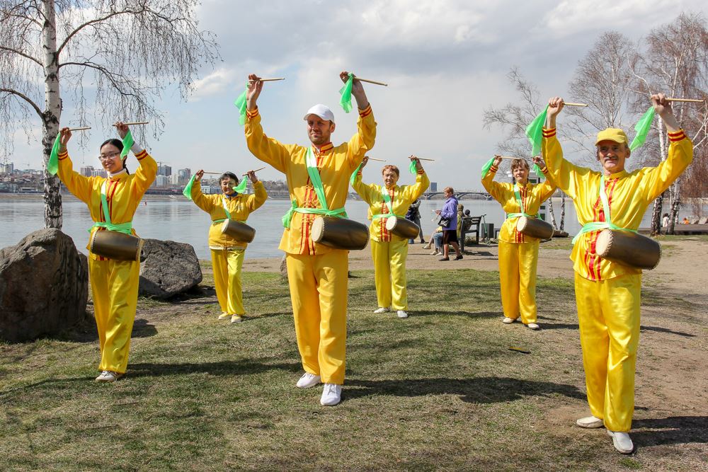 ![]() 图5:伊尔库茨克的法轮功学员表演腰鼓 |