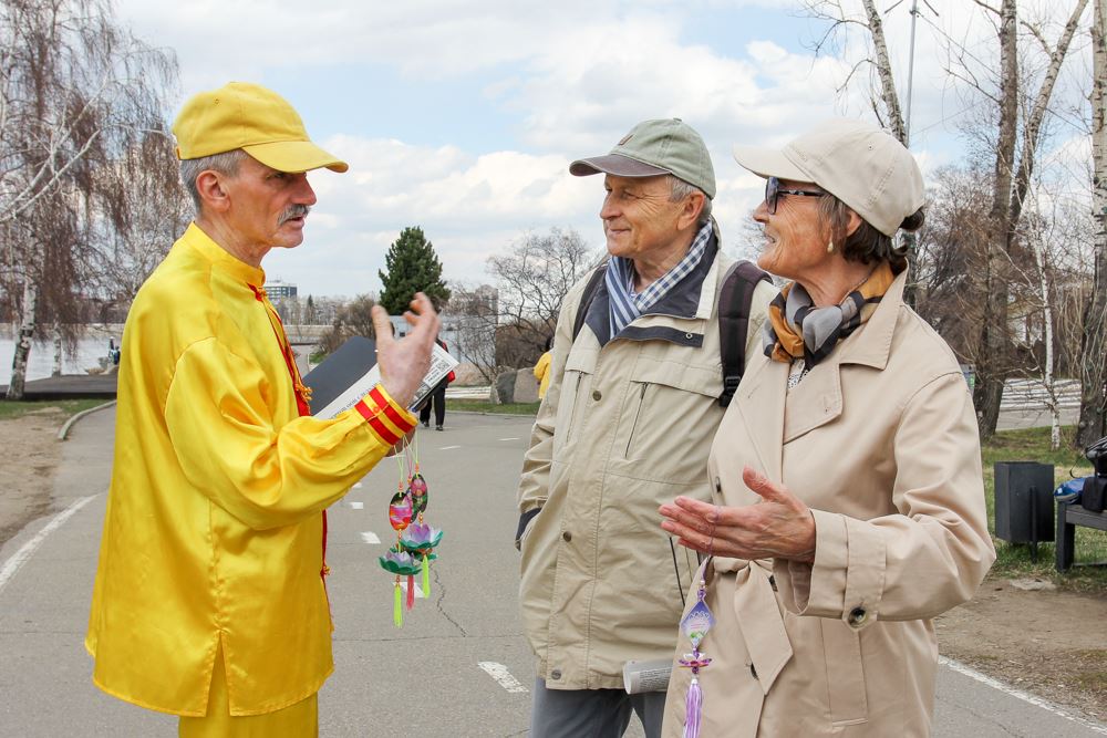 在圣彼得堡、皮亚季戈尔斯克、莫斯科、雅尔塔、伊尔库茨克和乌兰乌德,法轮功学员们分别参加了功法演示、分享修炼心得,还向民众讲述修炼的美好及法轮功在自一九九九年以来在中国遭受迫害的真相等。